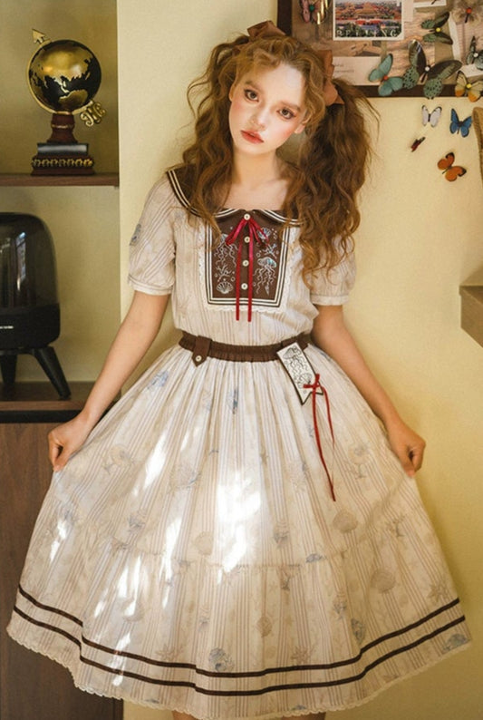 森派?海派?自然を感じる『ジュラシック・パーク』エリアに行くならカレッジスタイル クラシカルストライプワンピース リボンのヘアアクセ付きはいかが?派手すぎないクラシカルなストライプ模様なので、迷彩柄より落ち着いたコーデをお探しの方にぴったりです。
