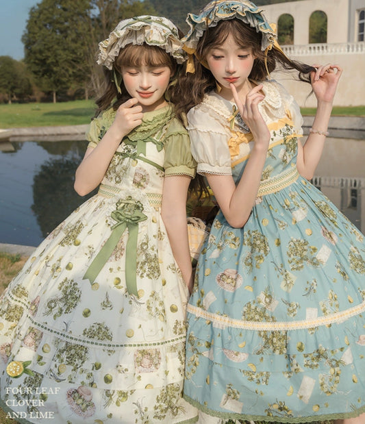 檸檬と鈴蘭のフレンチスリーブジャンパースカート リボンのヘアアクセ付