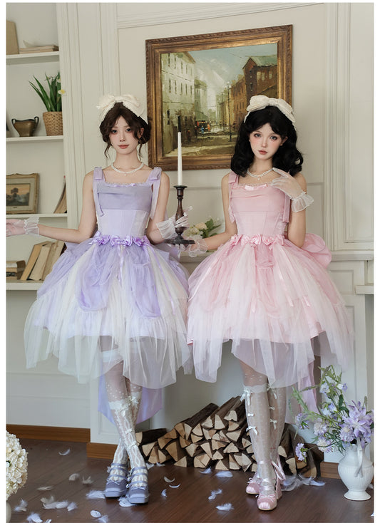 バレエコアリボンジャンパースカートと3wayオーバースカートセット