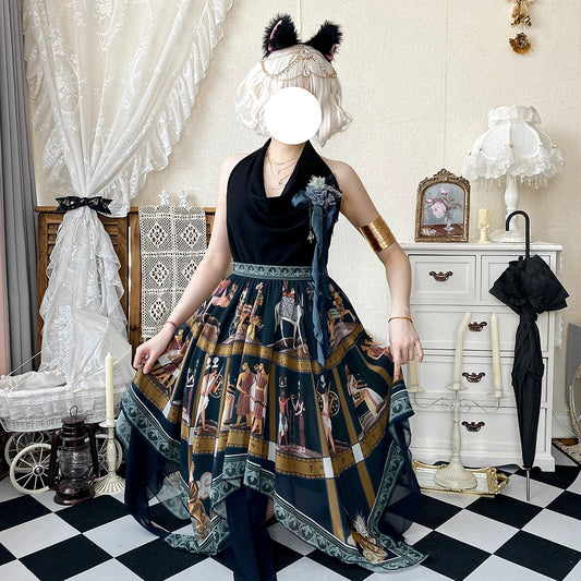Afternoon Forest レトロエレガント ホルターネックジャンパースカート ヘアアクセ付き