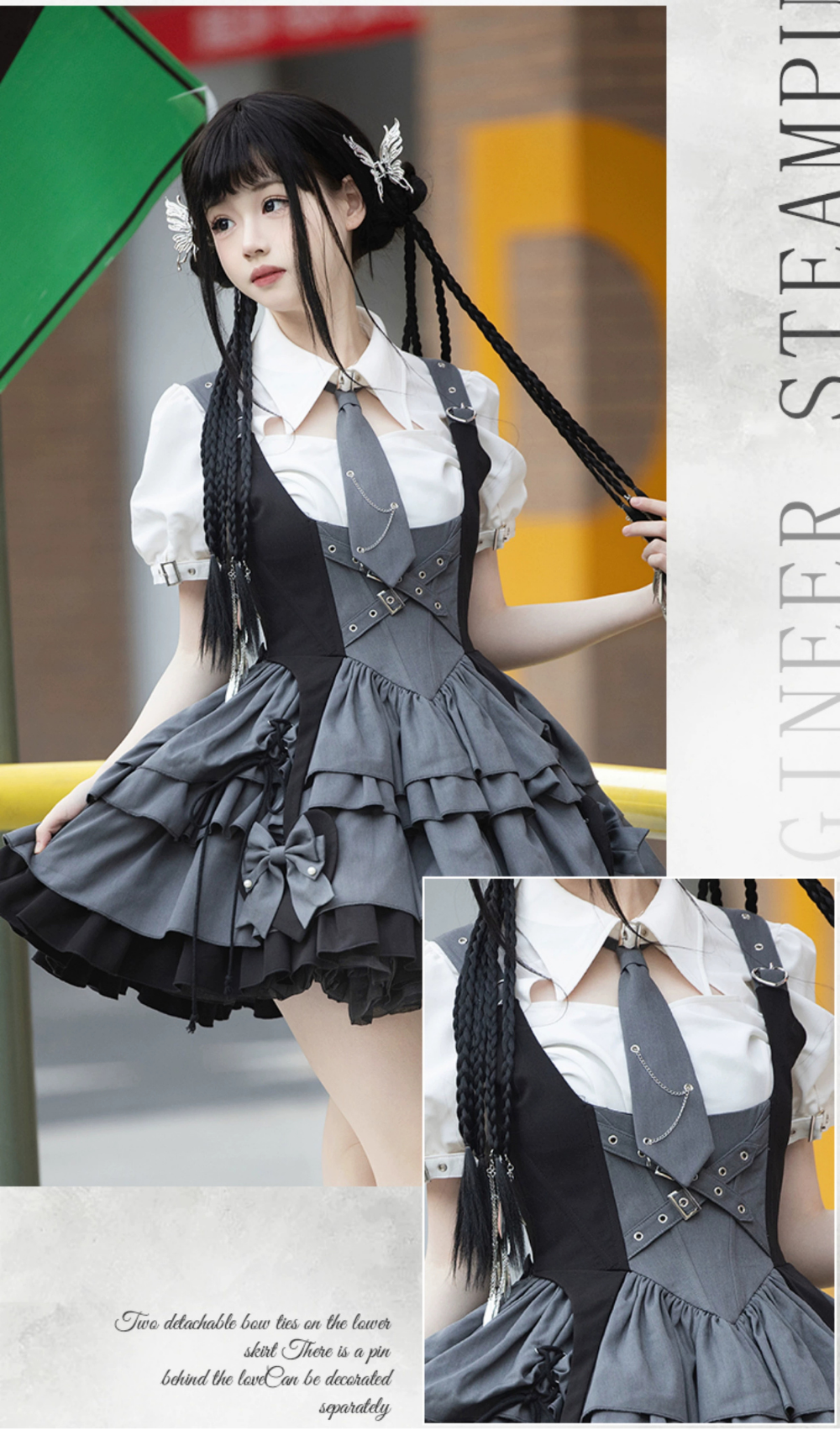 肩紐はサイズ調節ができ、スカートのリボンは好きな場所に付けられます♪