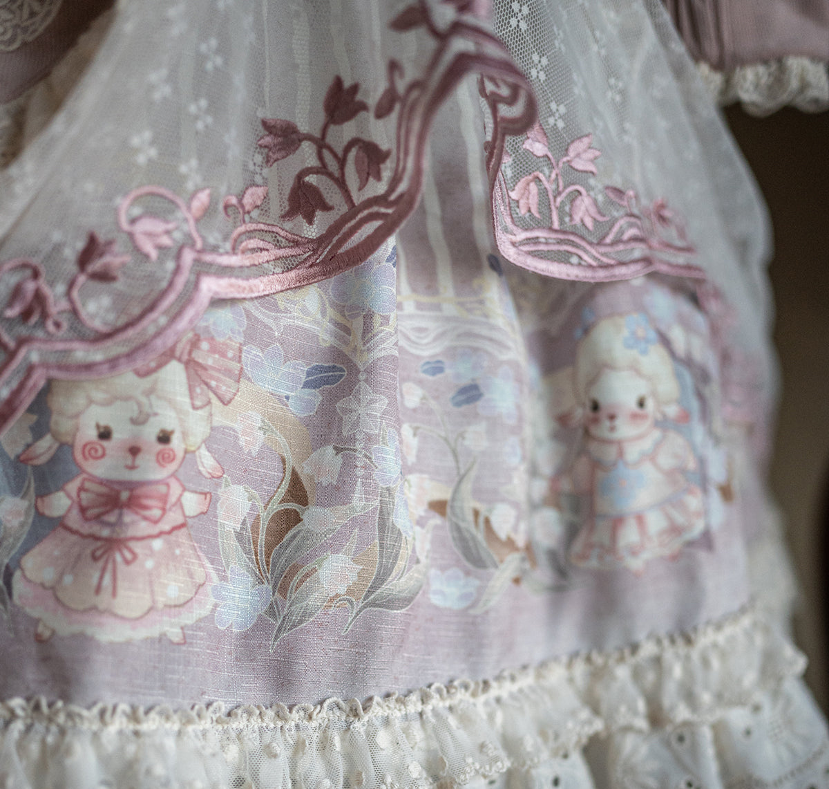 鈴蘭と羊のモチーフがロマンチックな長袖ワンピース。