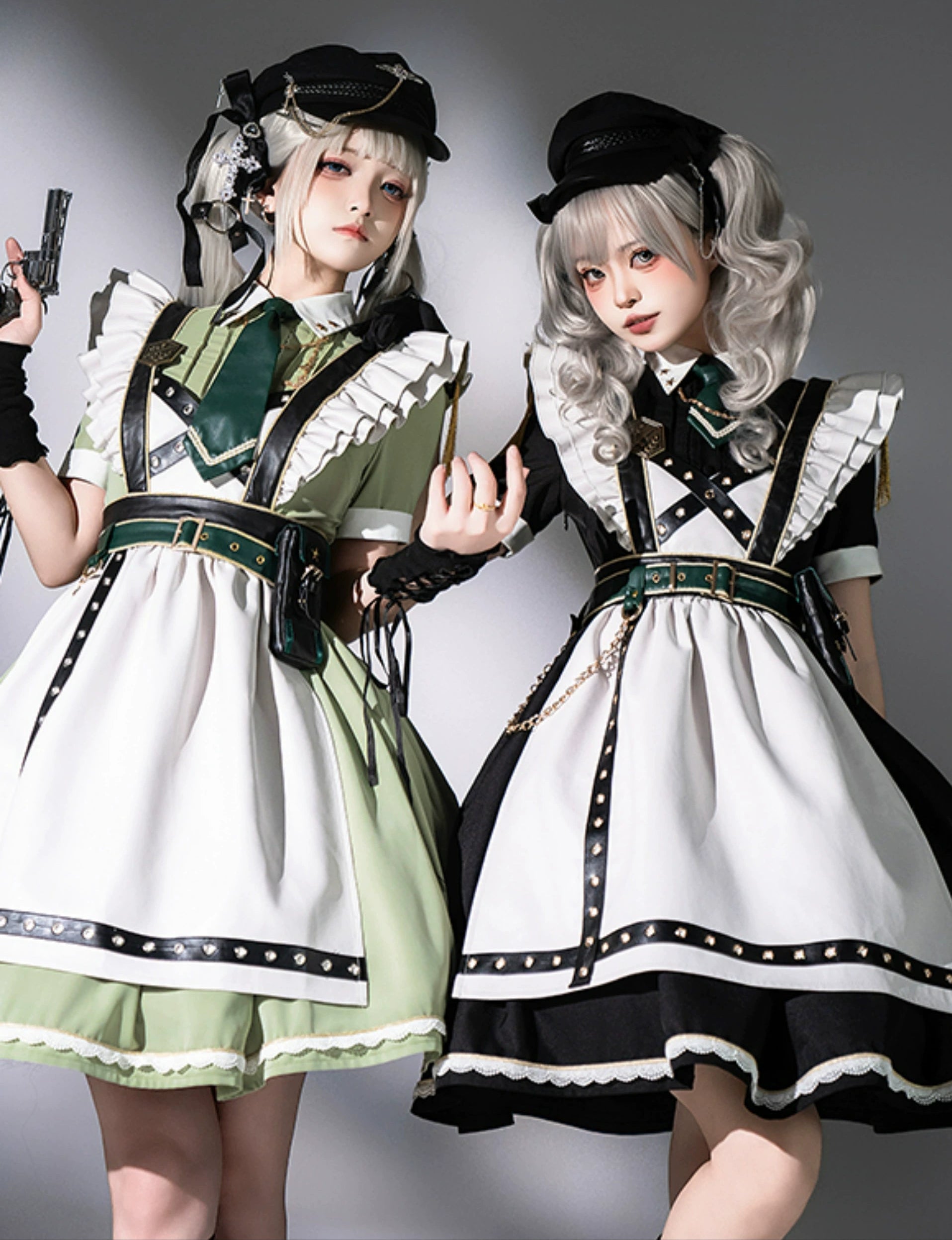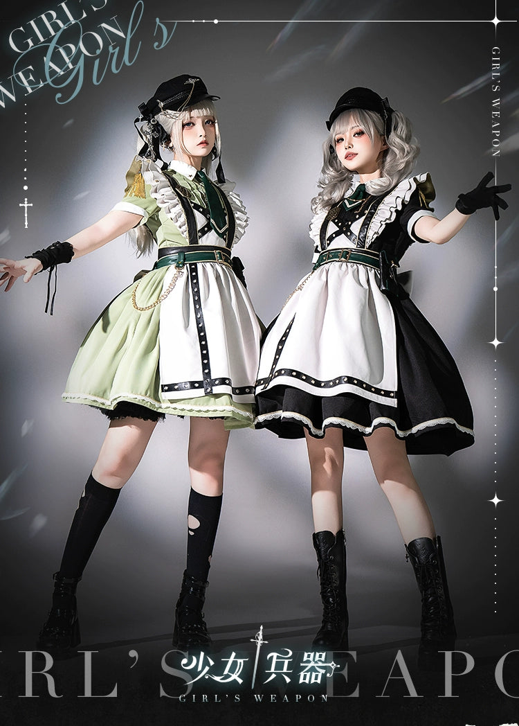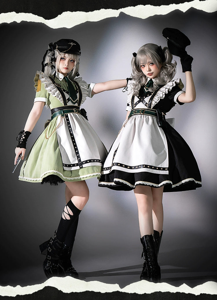 ミリタリースタイルとメイド服がミックスされたかっこかわいいワンピースセット。