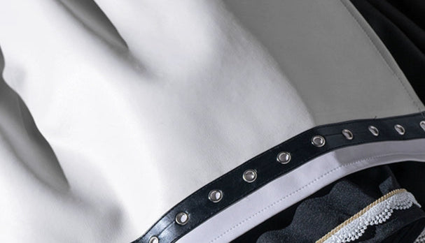 スタッズデザインのエプロンは、素材をフェイクレザーとTR生地の2種類から選べます。