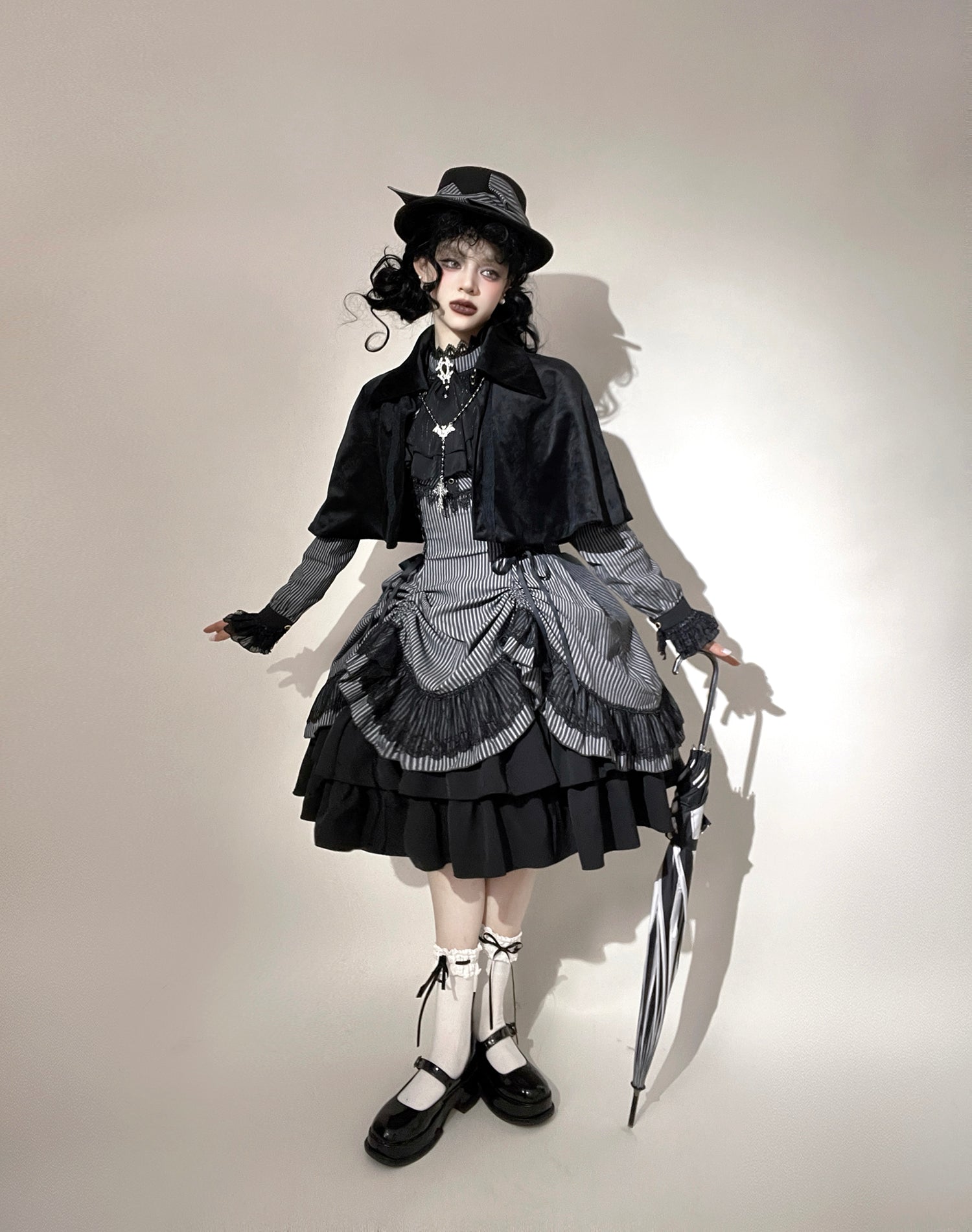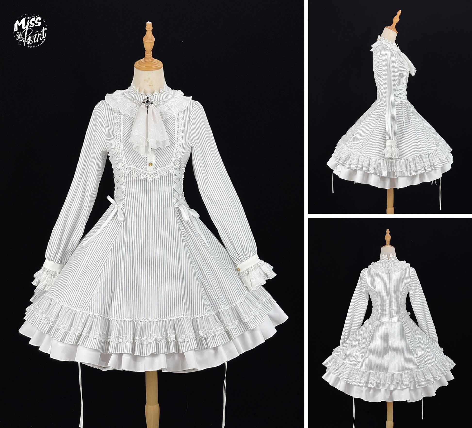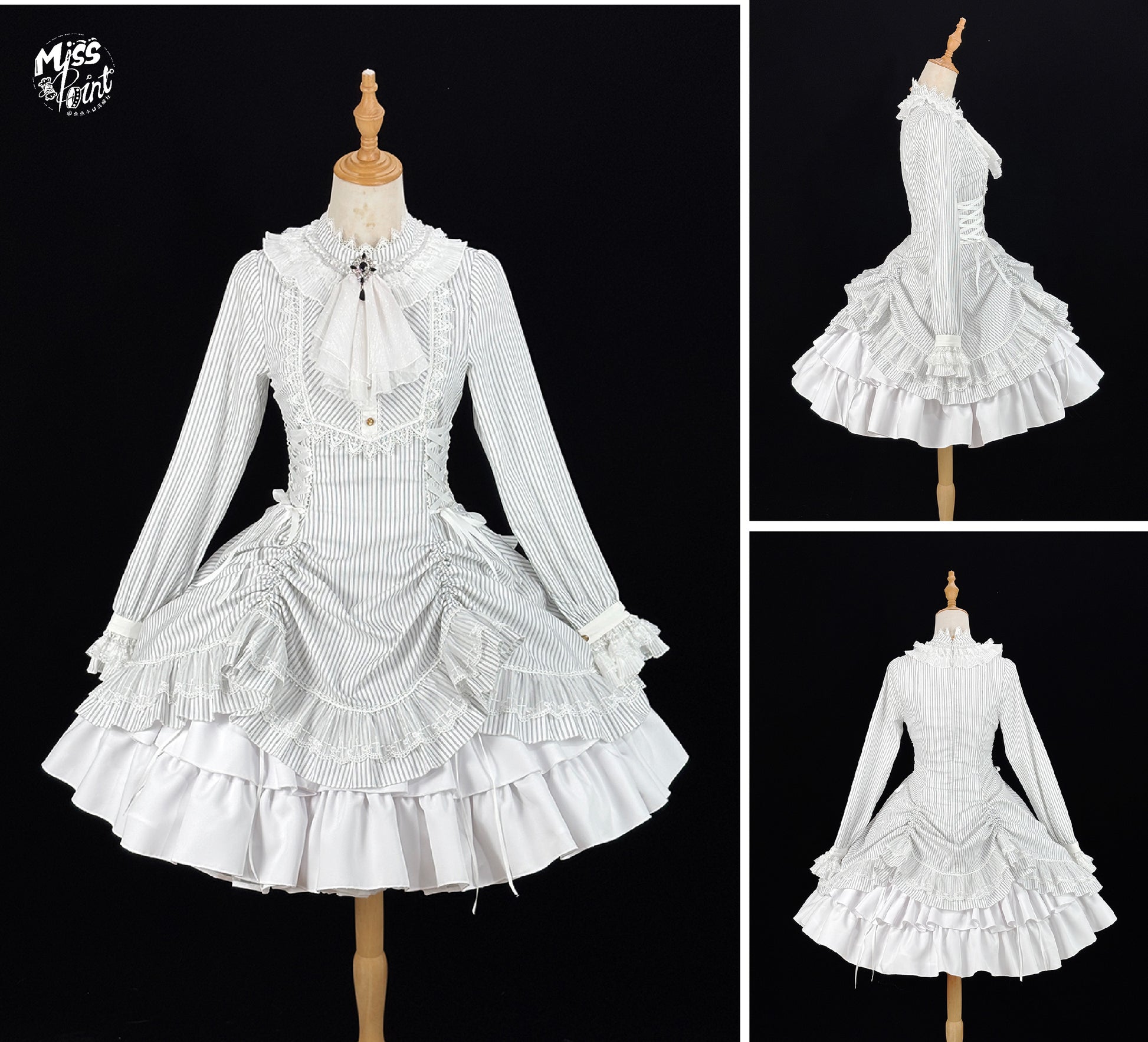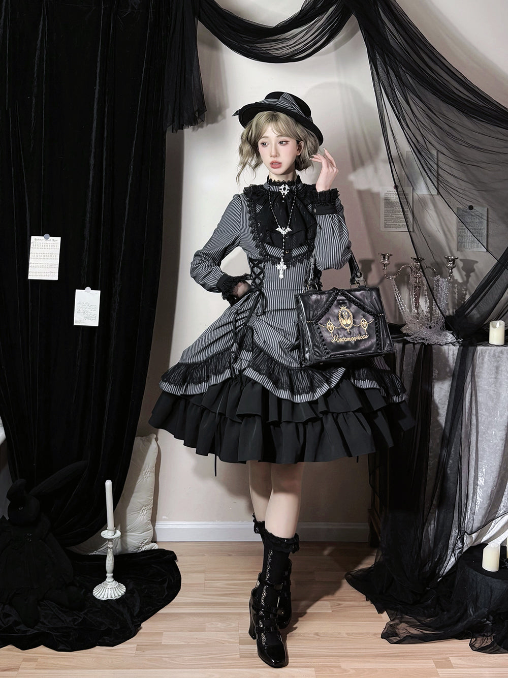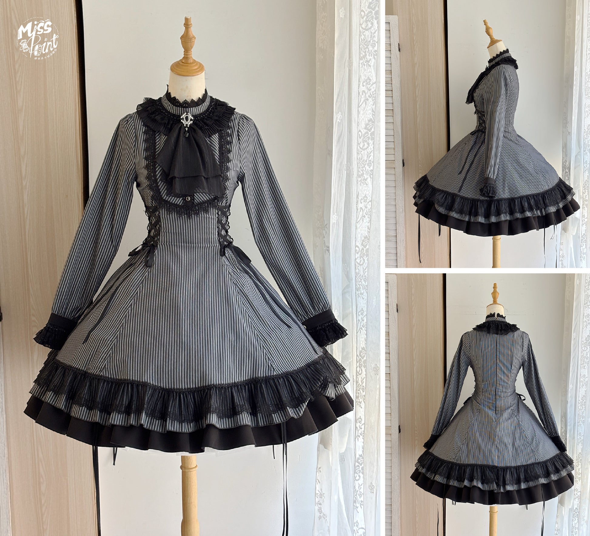 【受注予約1/7まで】領主貴族のゴスロリ スタンドカラーワンピース 縦縞タイプ・新色