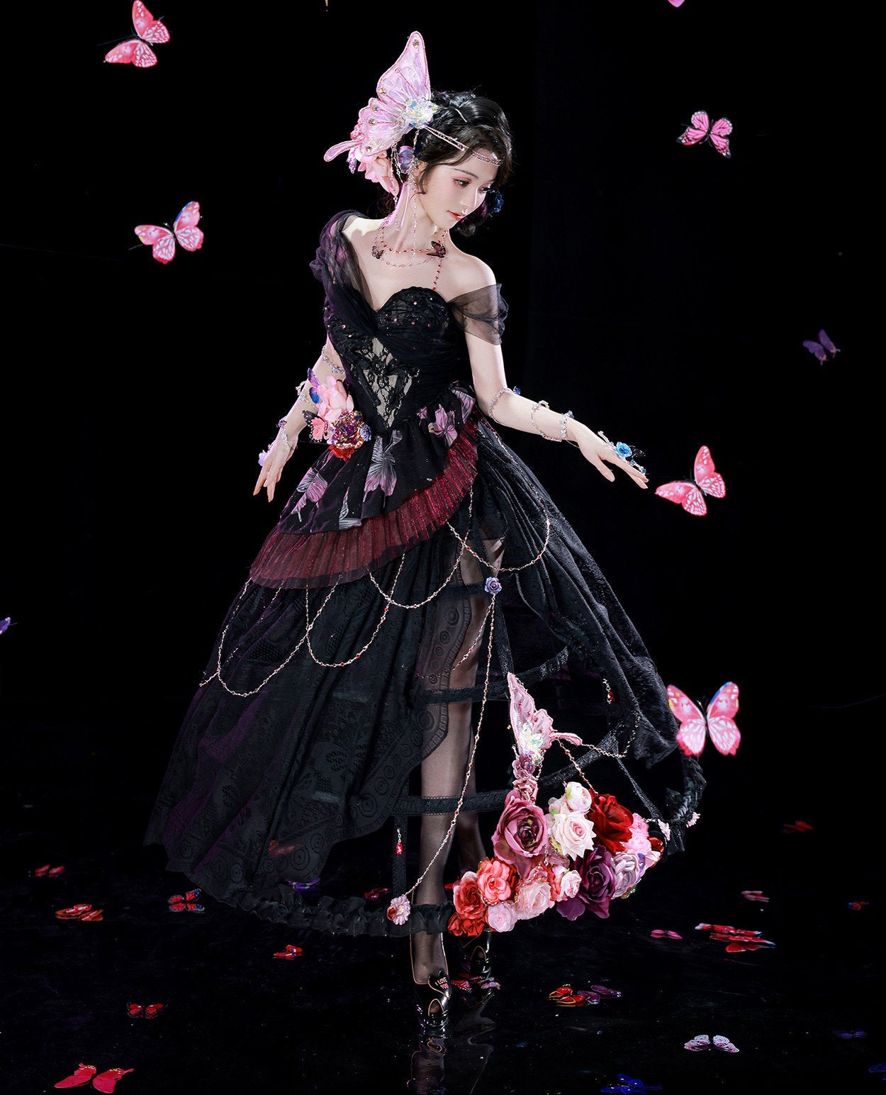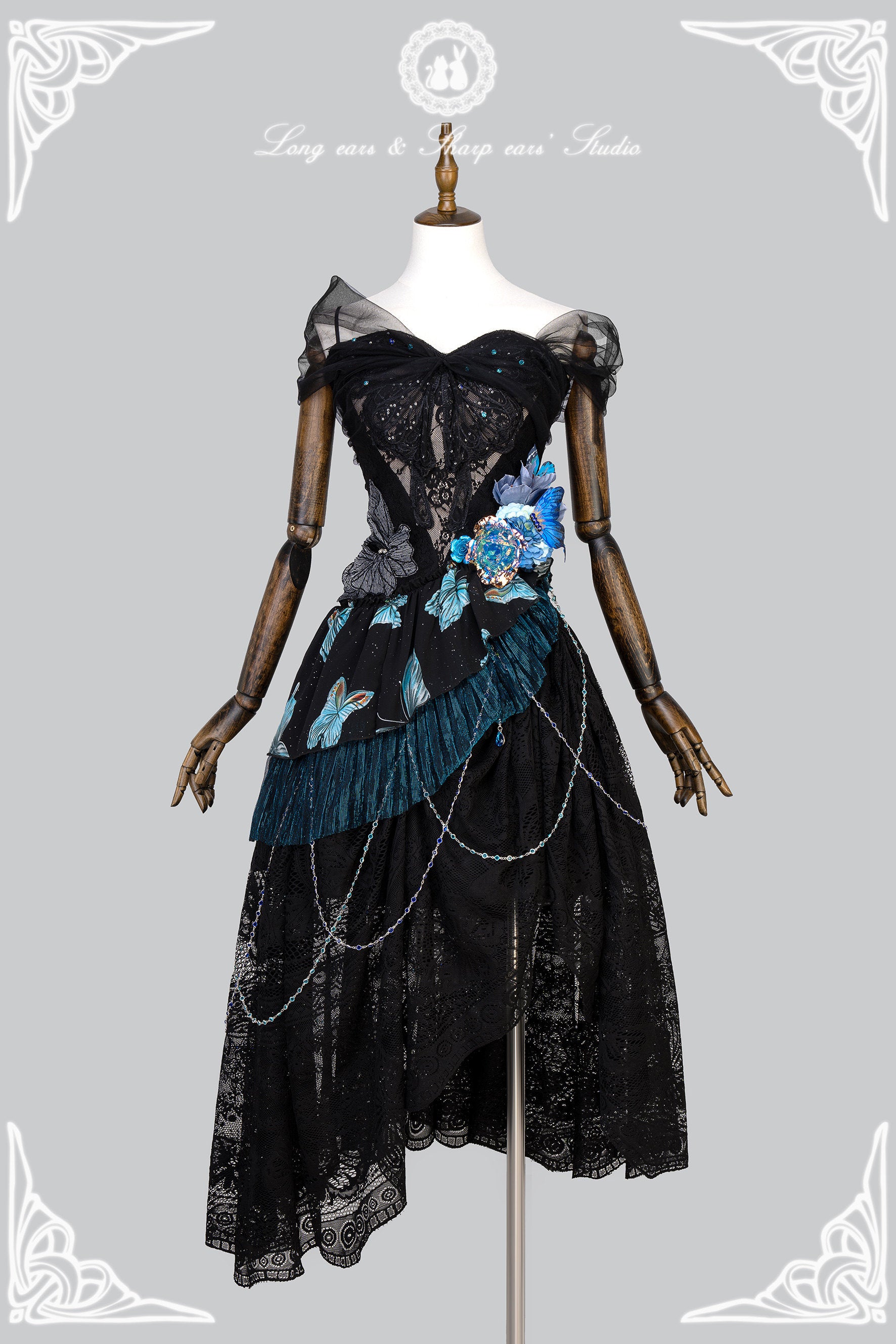【受注予約12/29まで】夜吻蝶舞 ドレス+鳥かごパニエセット