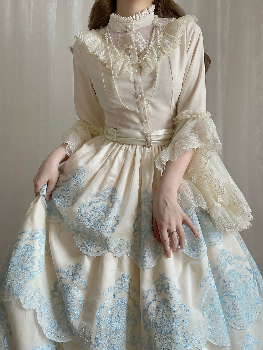 [Pre-order] Prince Lolita Medieval Style Frilled Tie Blouse