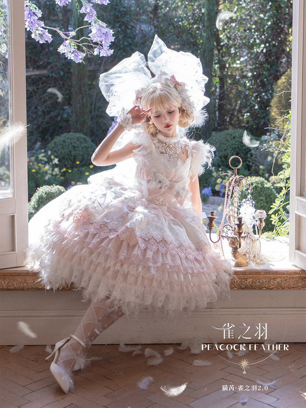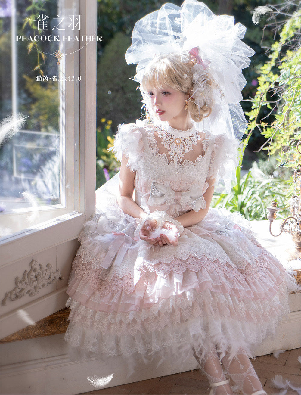 【新色・受注予約1/22まで】Peacock Feather プリンセスドレス・ホワイト×ピンク