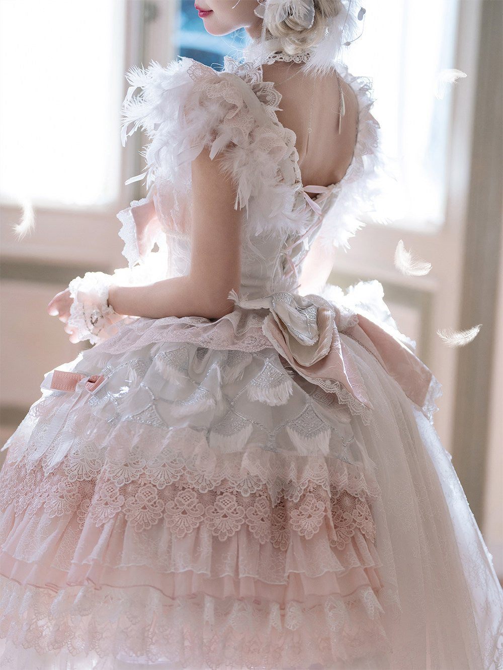 ふわふわの羽根やリボン、たっぷりレースでプリンセスのようなロリィタコーデが楽しめます。