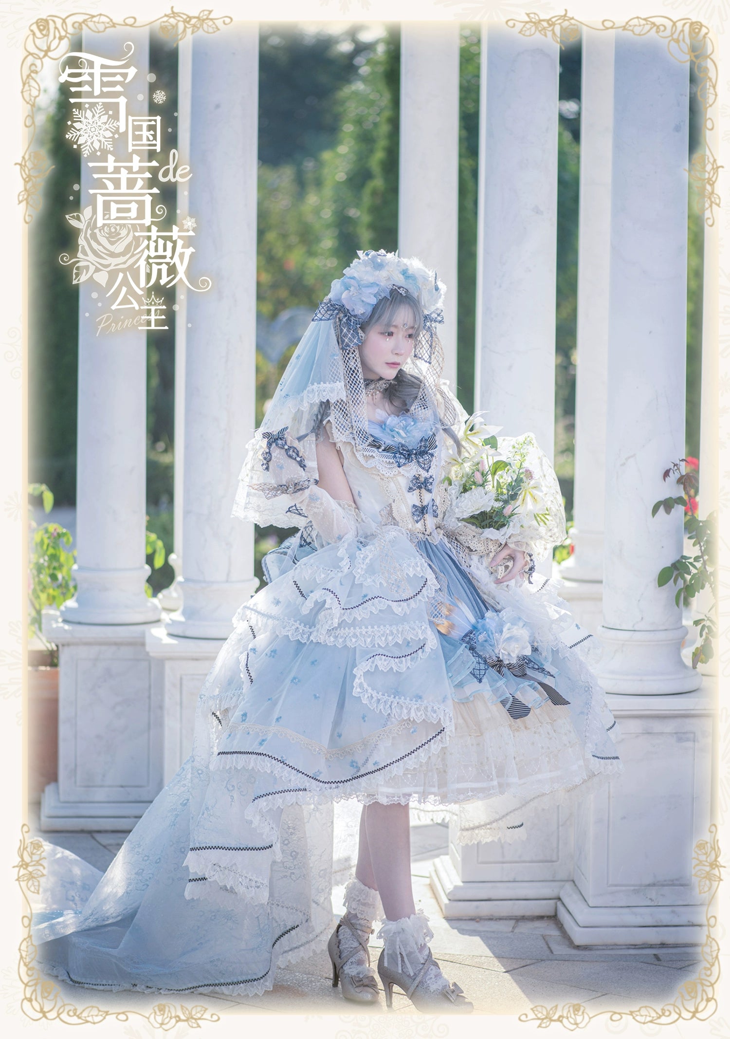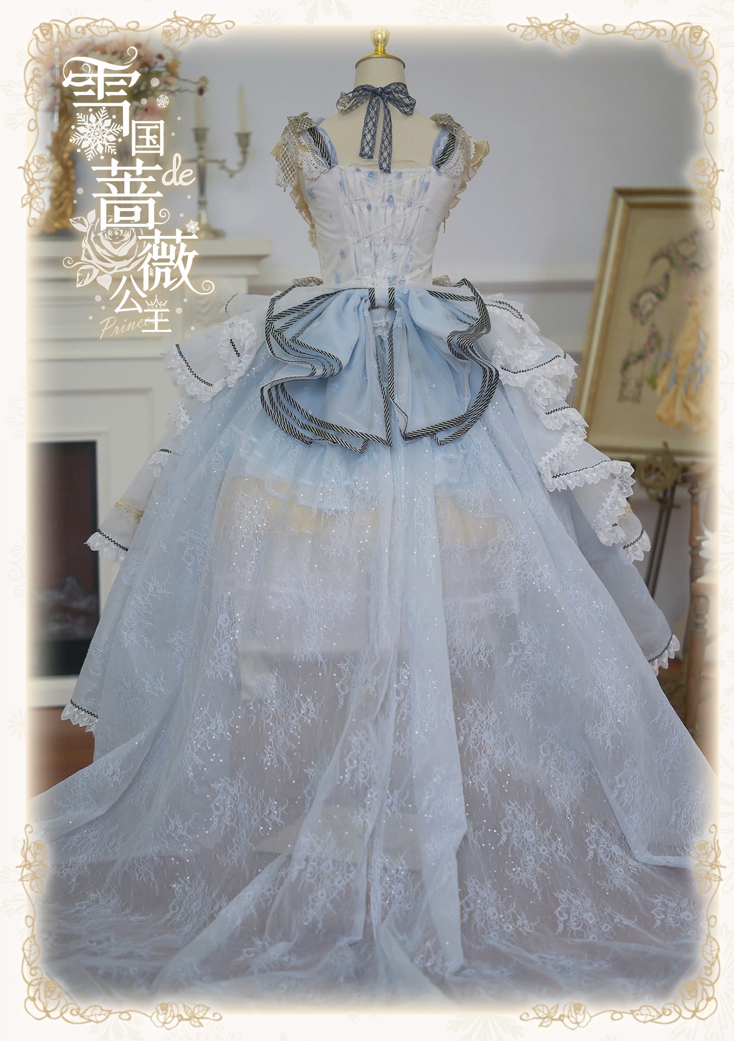【受注予約8/13まで】Snow Rose Princess トレーン付きドレス・パステルブルー