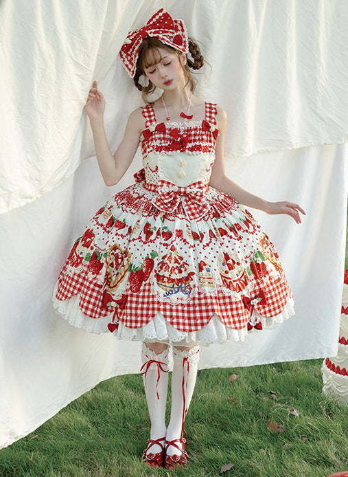 【受注予約11/18まで】Strawberry Cake Guide プリントジャンパースカート