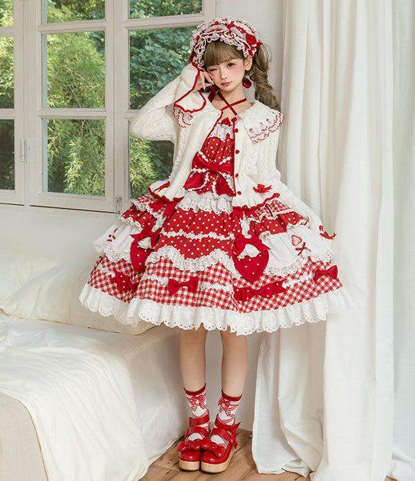 【受注予約11/18まで】Strawberry Cake Guide ティアードジャンパースカート
