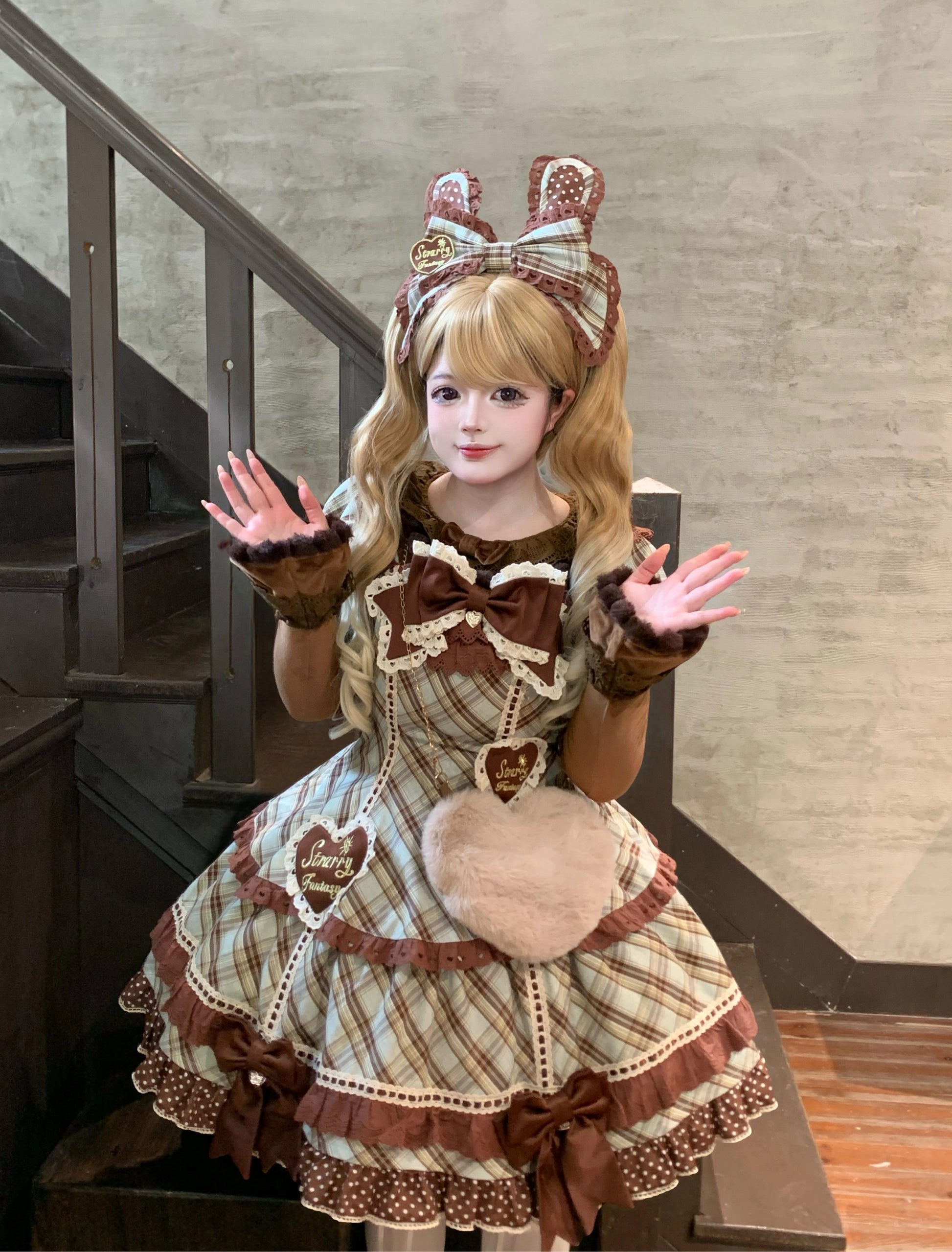 【受注予約11/13まで】Velvet Sweetie Heart チェックの半袖ワンピース・ブラウン
