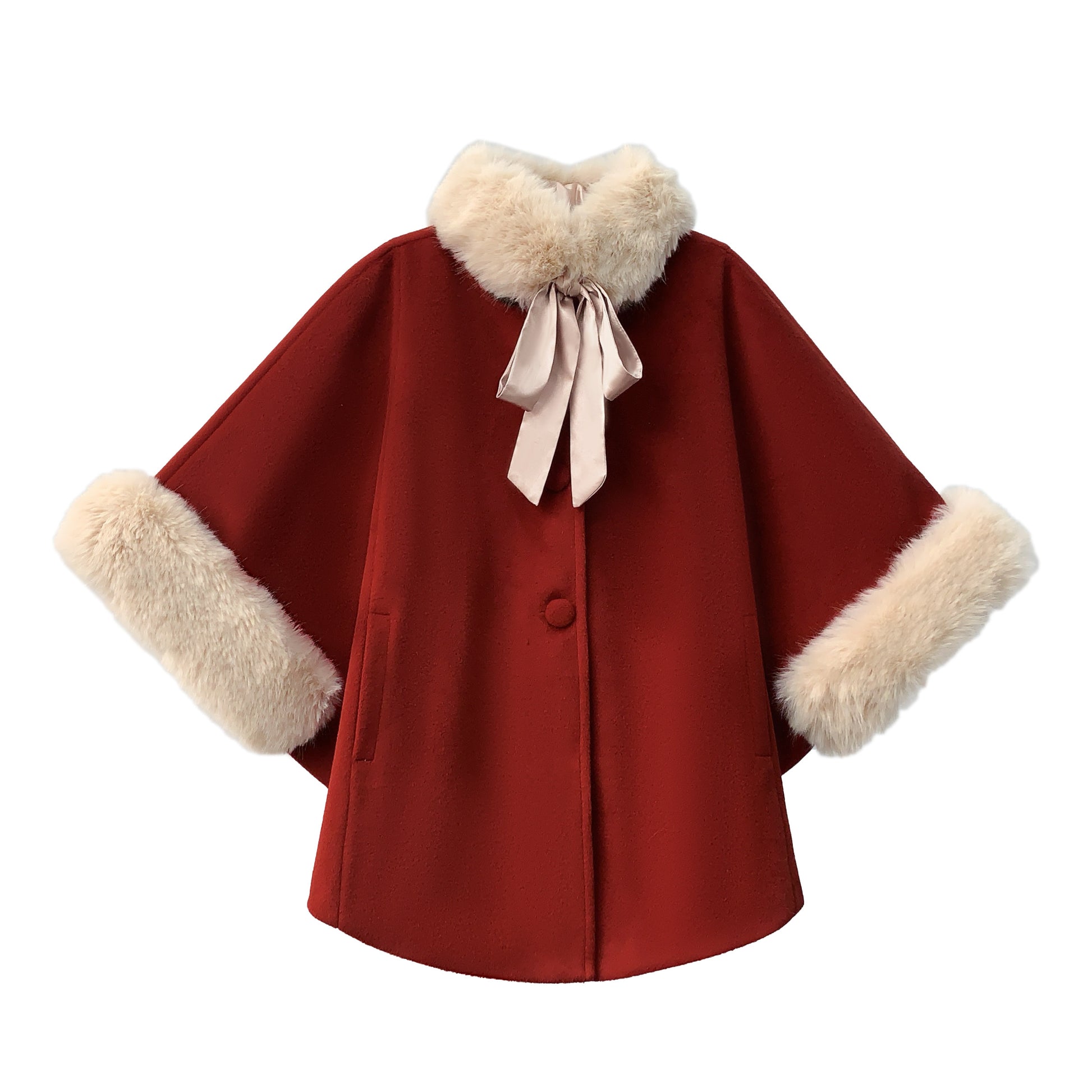 クラシカルレッドのファー付きマント