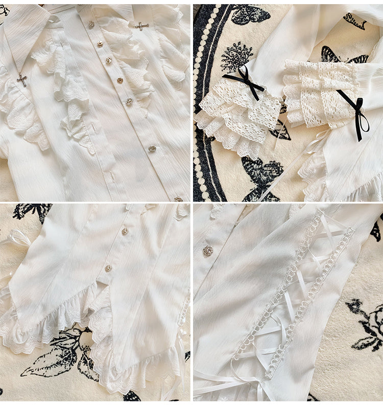 [Pre-order] Prince Lolita Medieval Style Frilled Tie Blouse