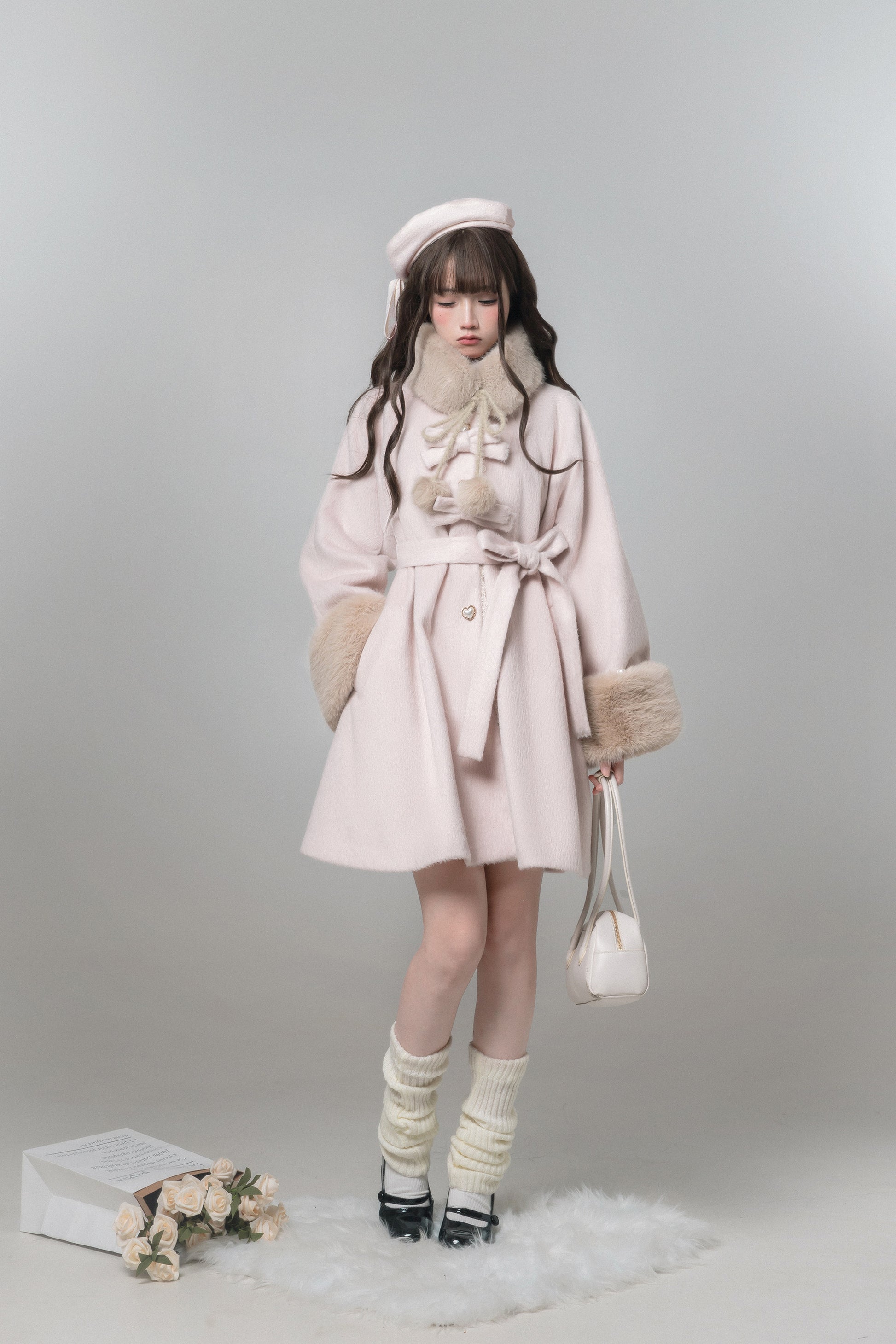 ふわふわ素材がかわいいベレー帽。お揃いのコートとのコーデがおすすめです。