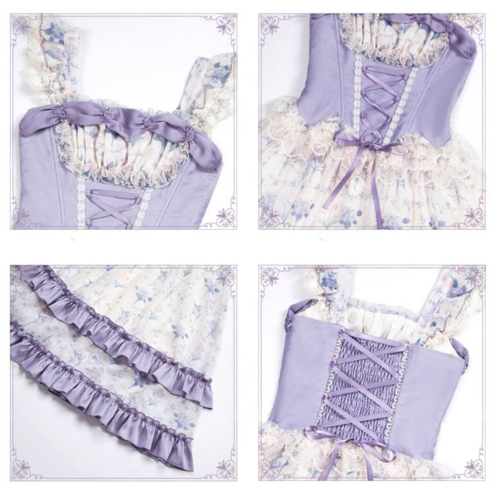 【限定特別価格】クラシカルリボンジャンパースカート・グレー +パニエ