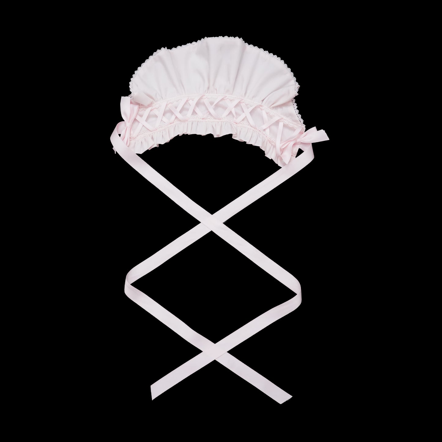 ボンネットやヘッドドレスを合わせて全身ピンクコーデに♡