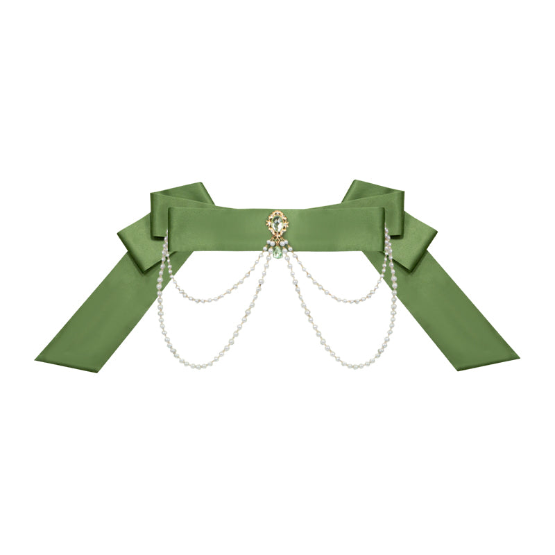 背中のリボンでサイズ調節が可能で、胸元のリボンは取り外しができます。