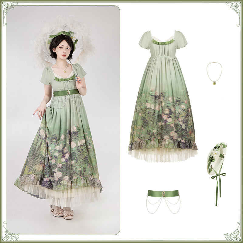 薔薇庭園 油絵プリントワンピース 単品&セット