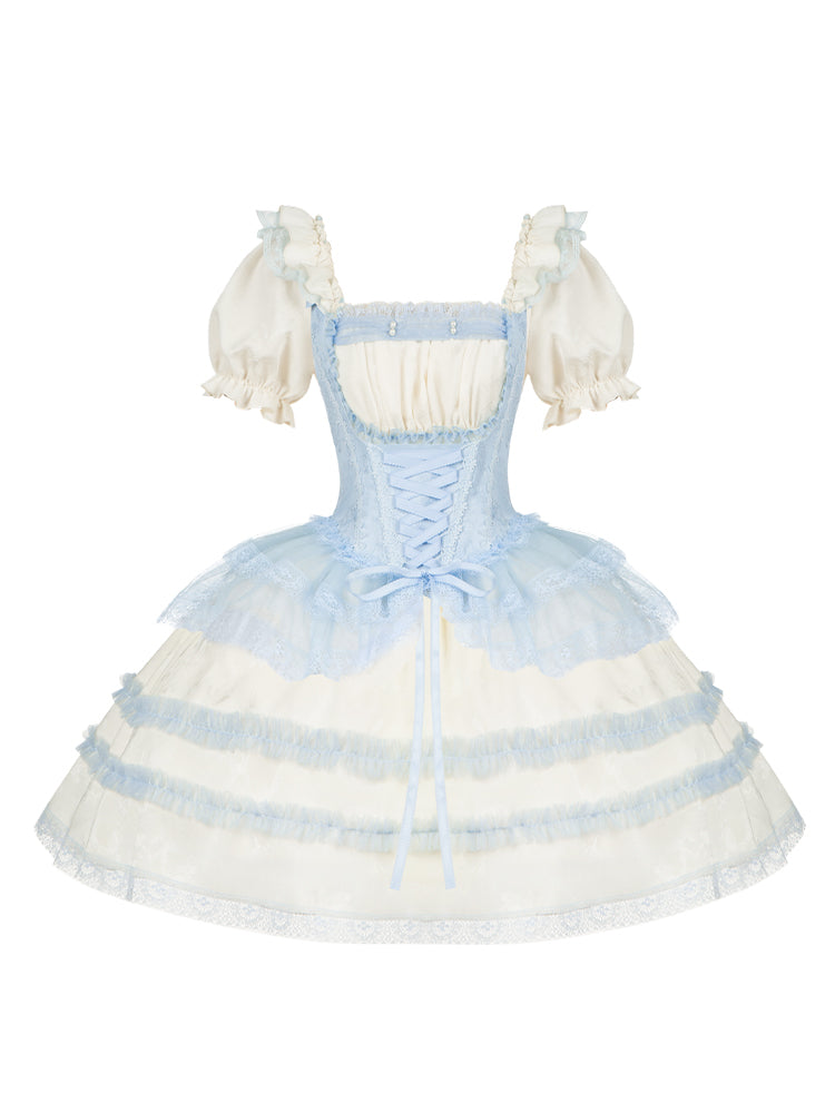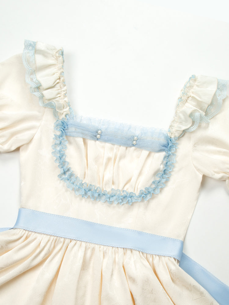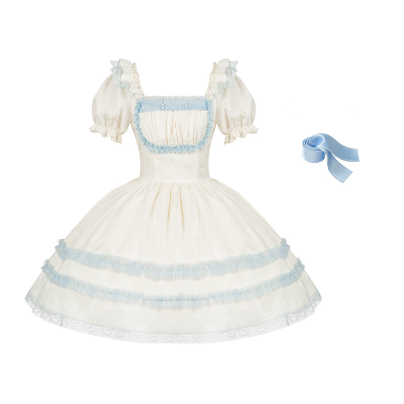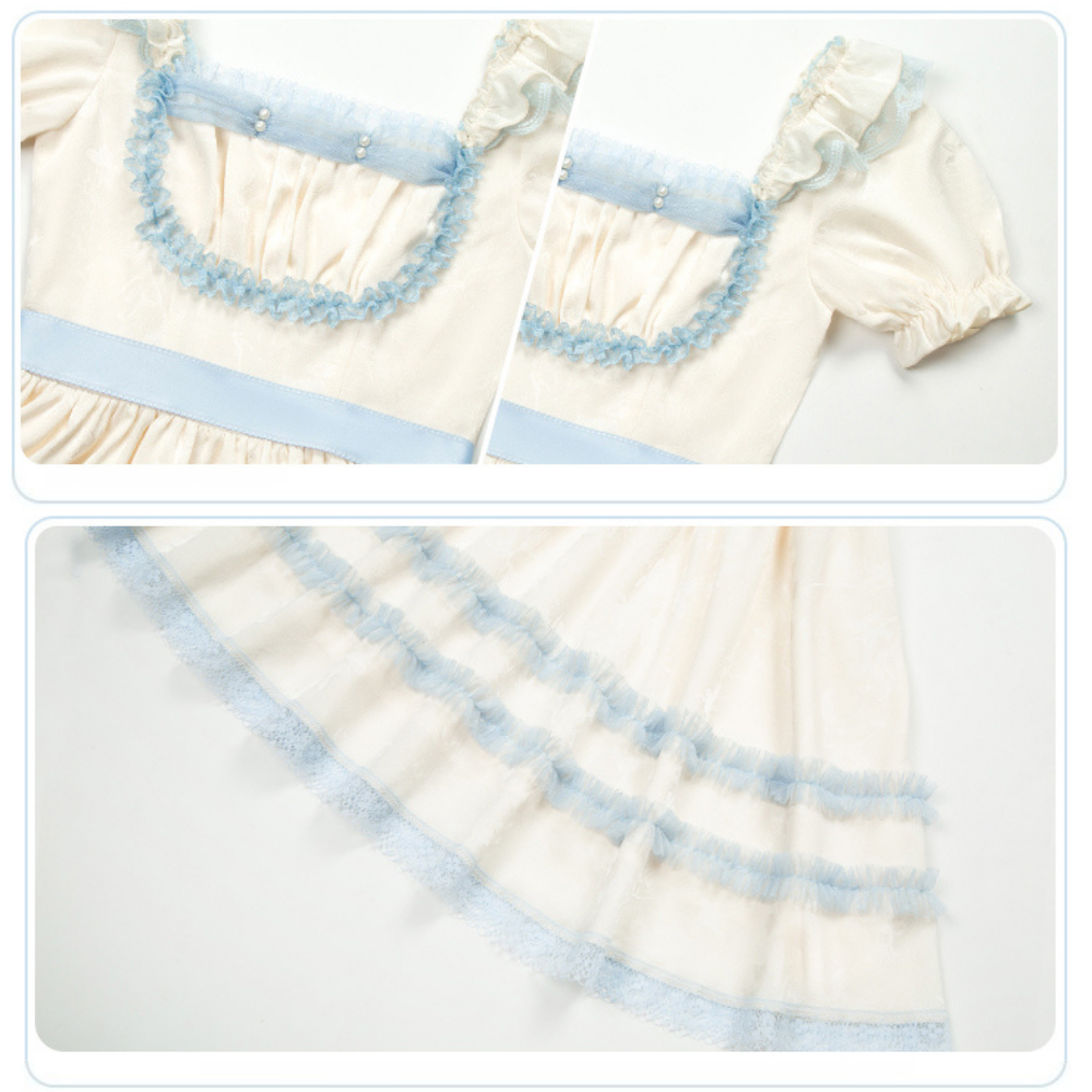 【予約販売】Sea Salt Iced Tea ライトブルージャガードワンピースセット・ショート丈