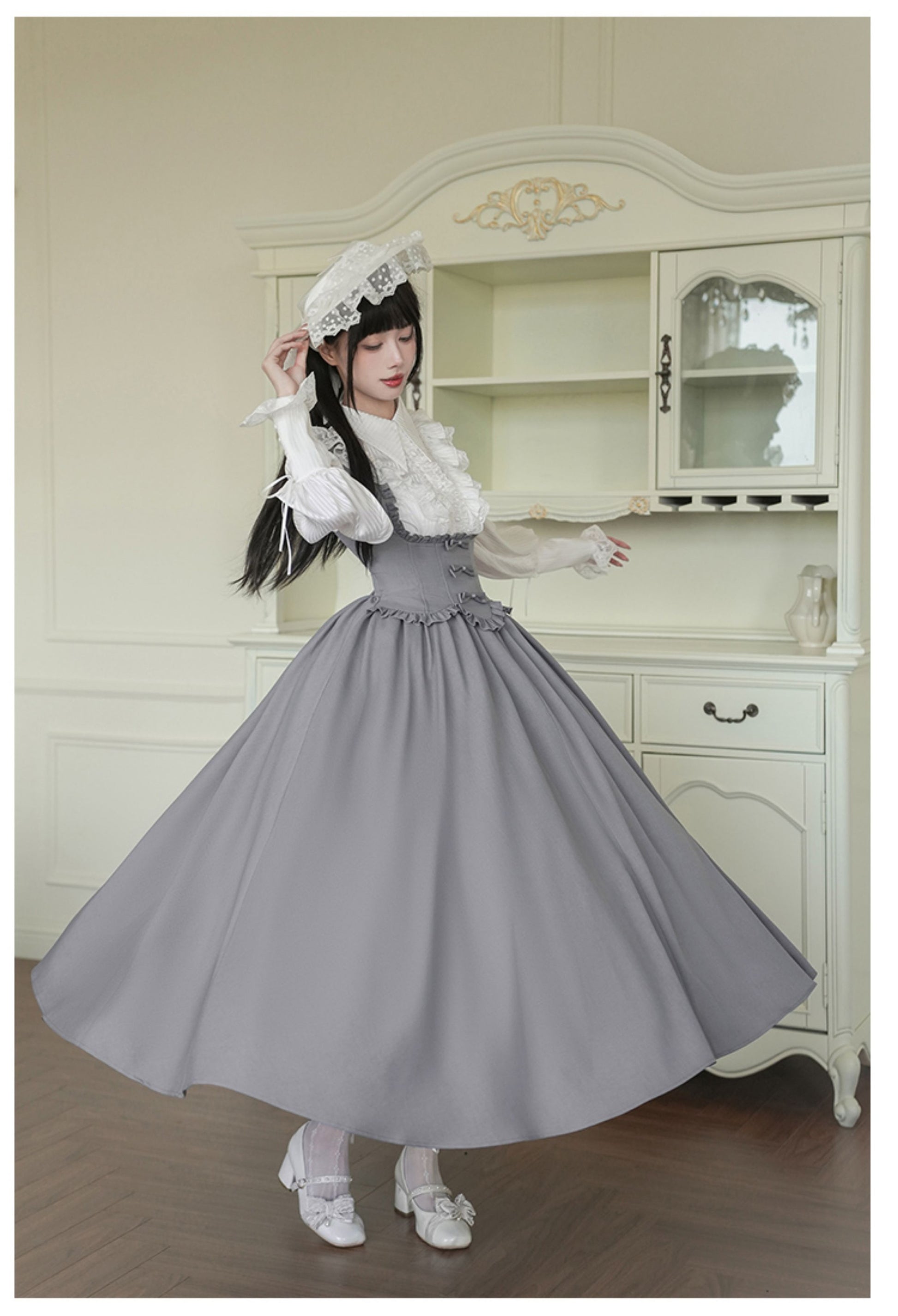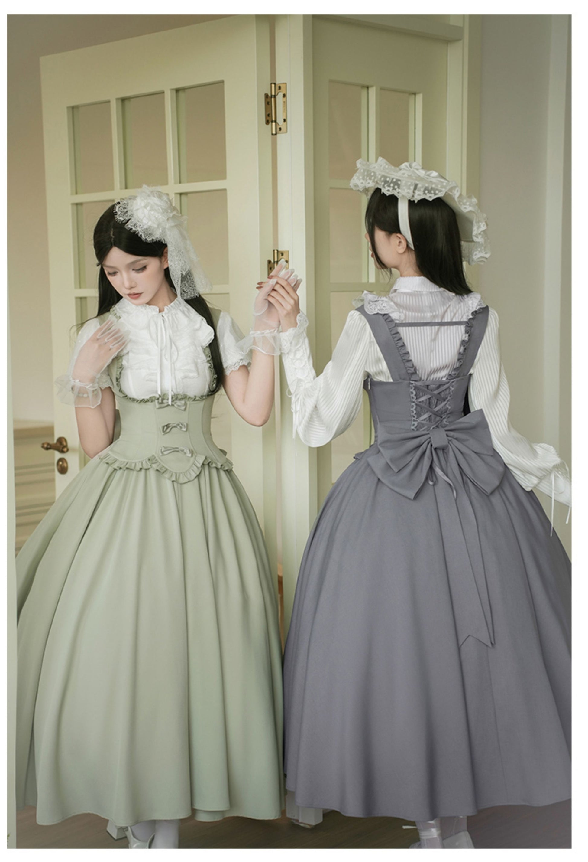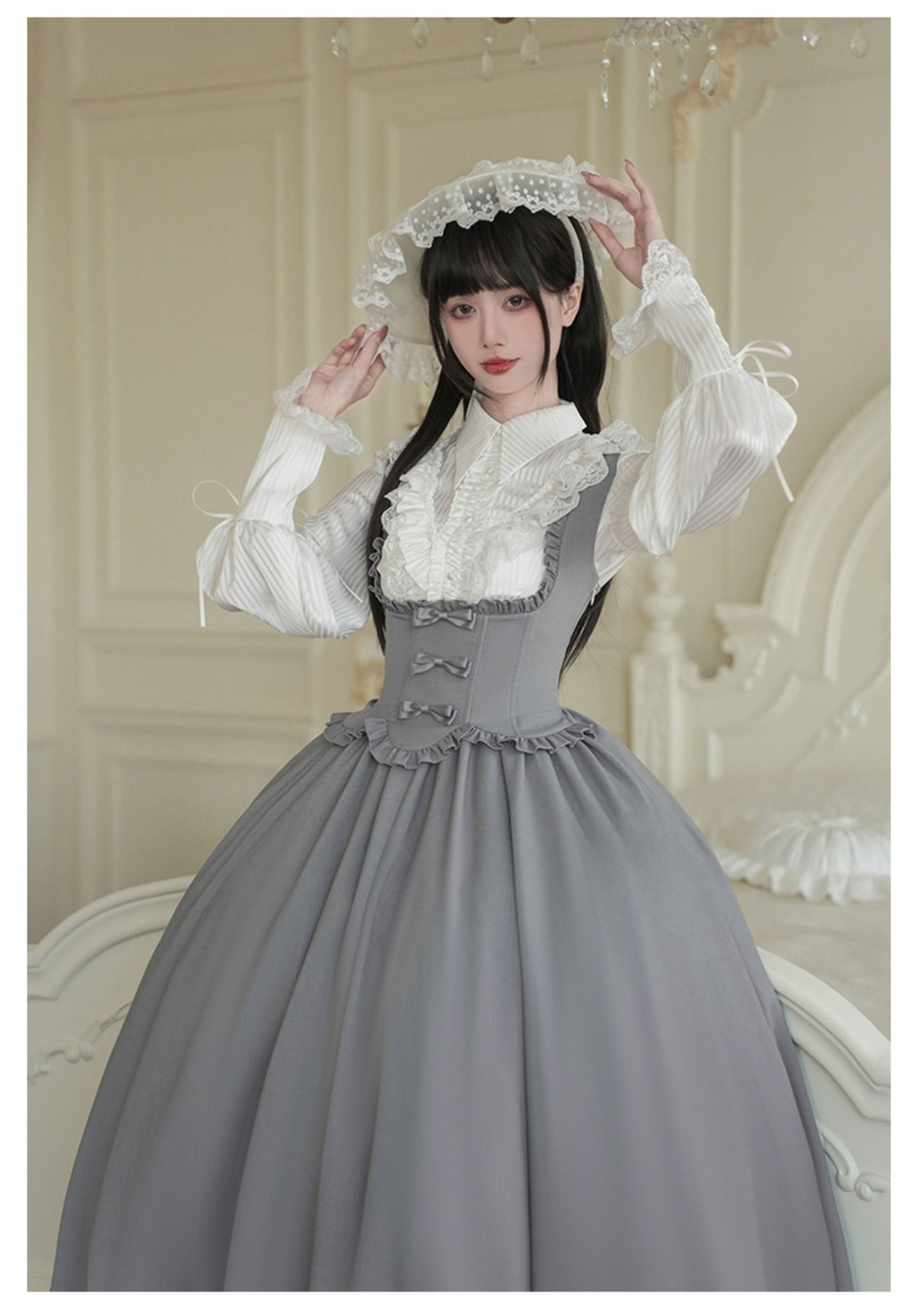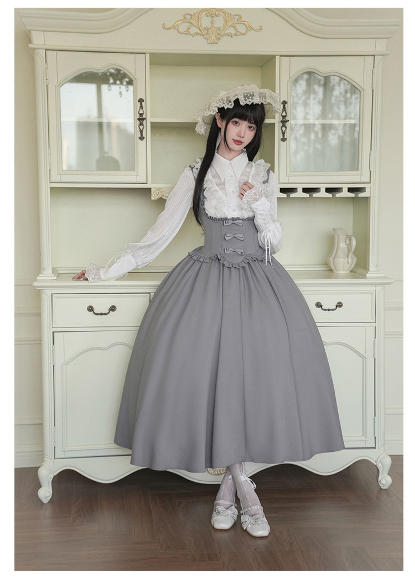 【限定特別価格】クラシカルリボンジャンパースカート・グレー +パニエ