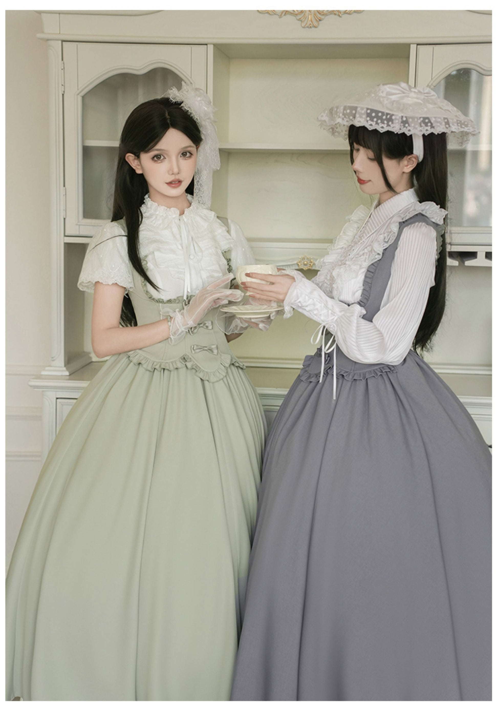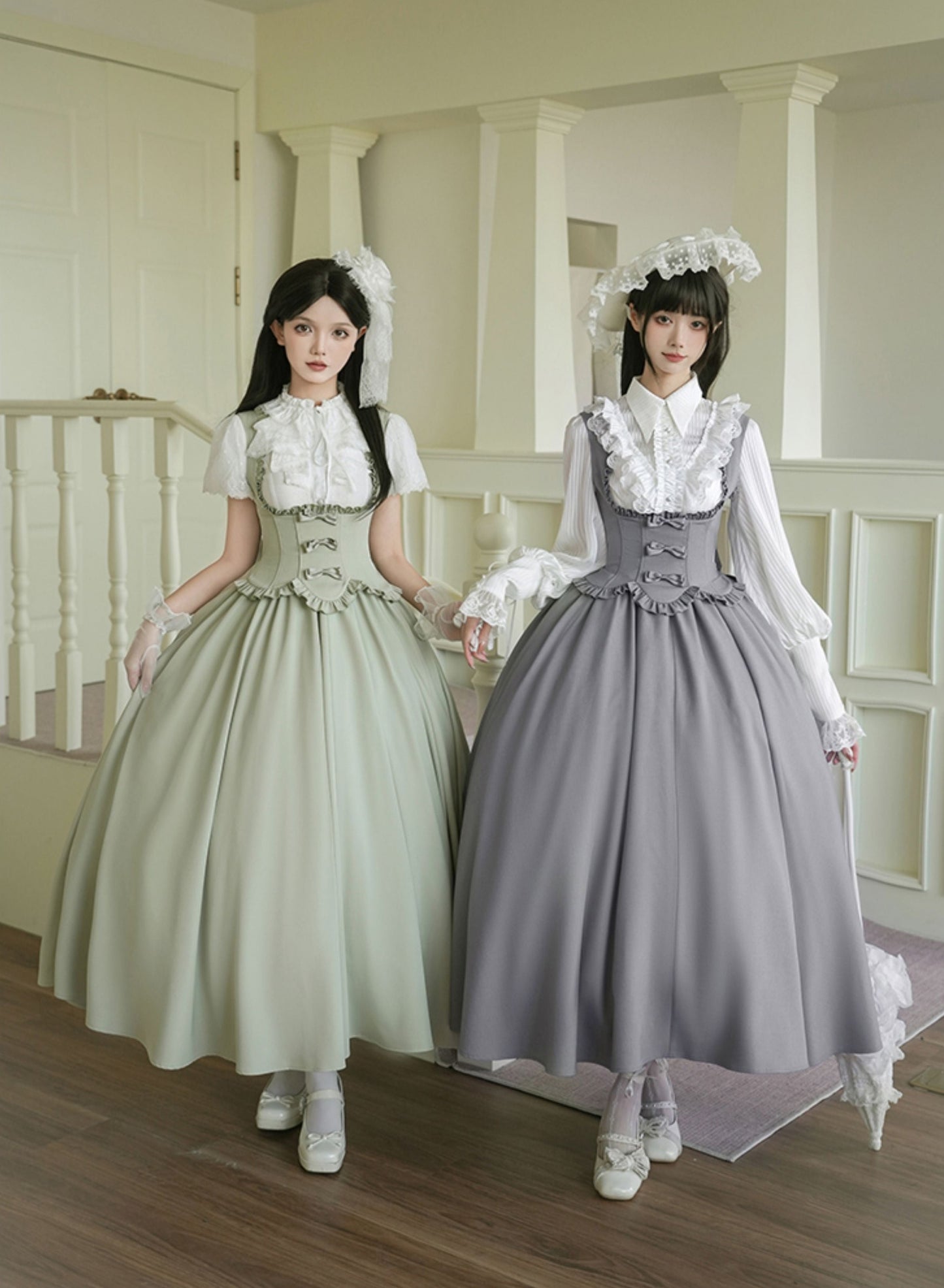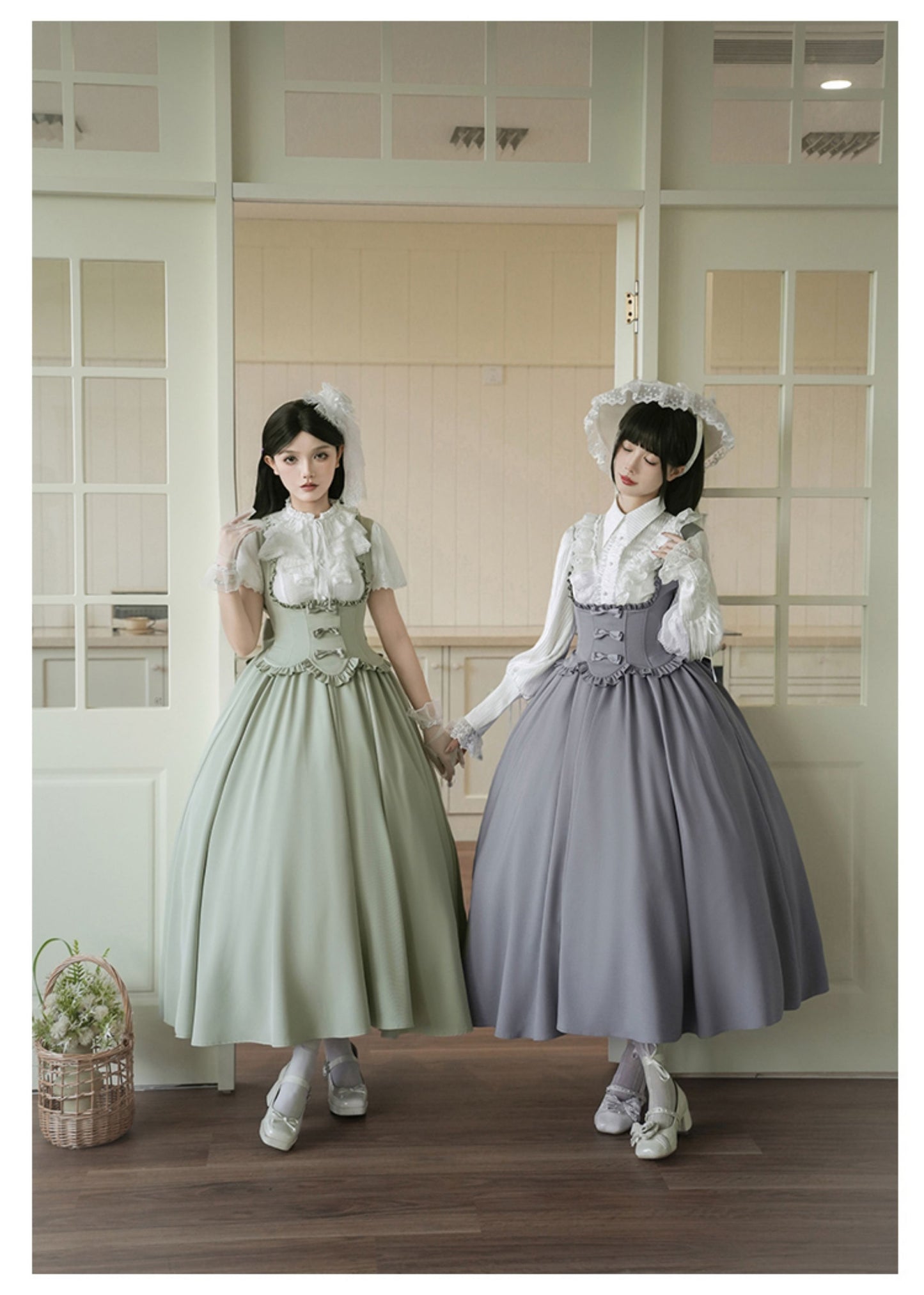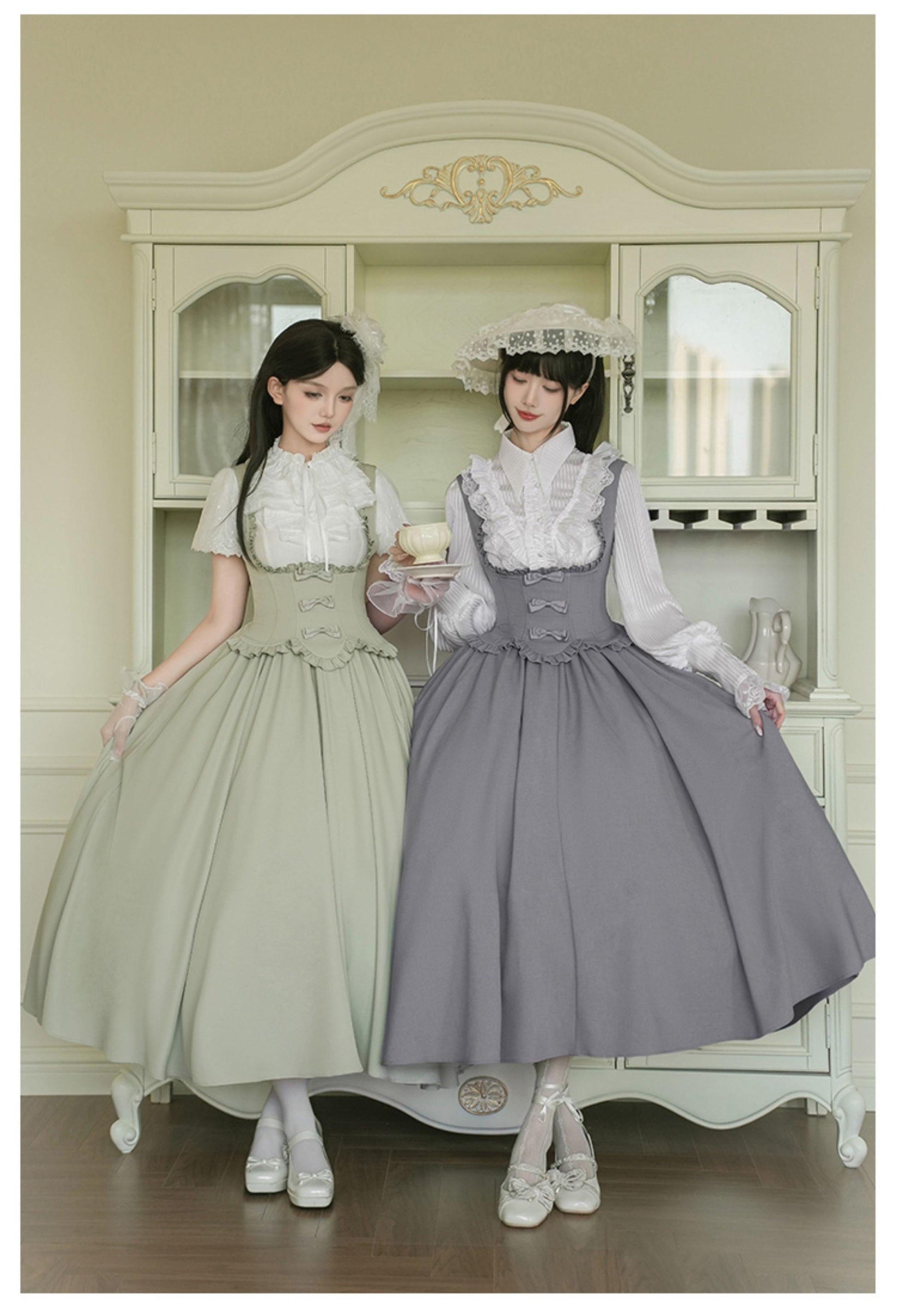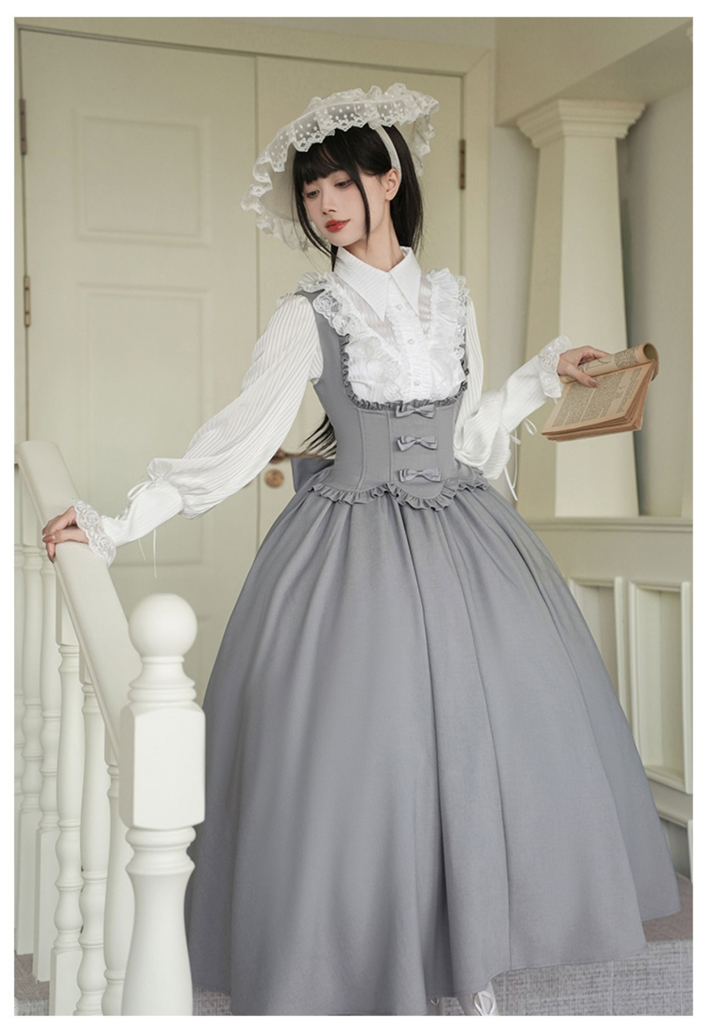 【限定特別価格】クラシカルリボンジャンパースカート・グレー +パニエ