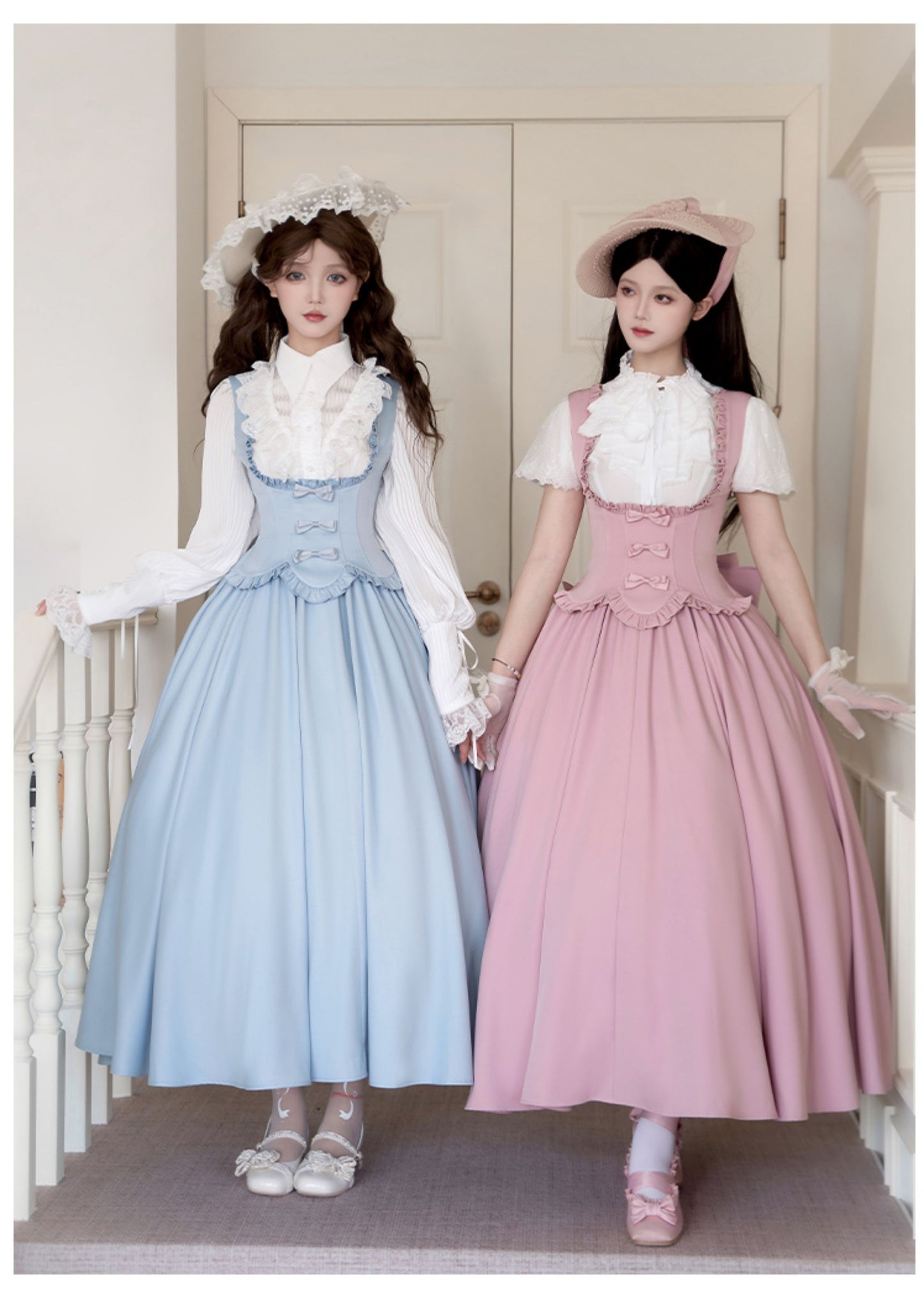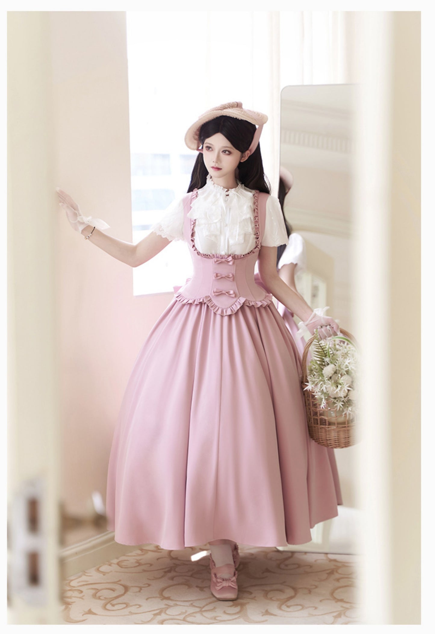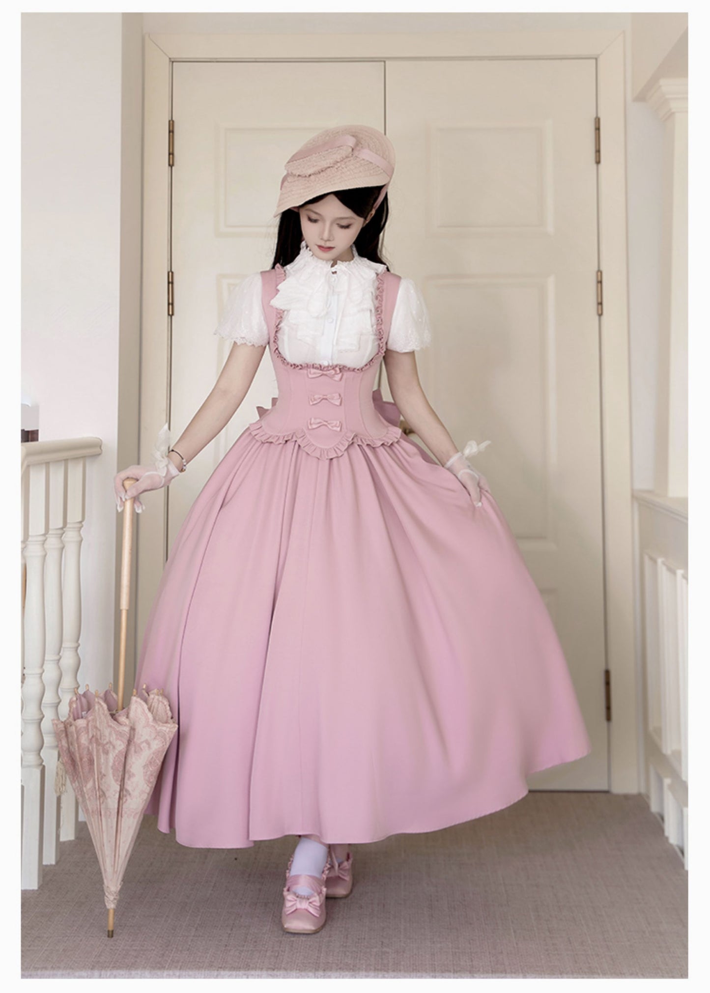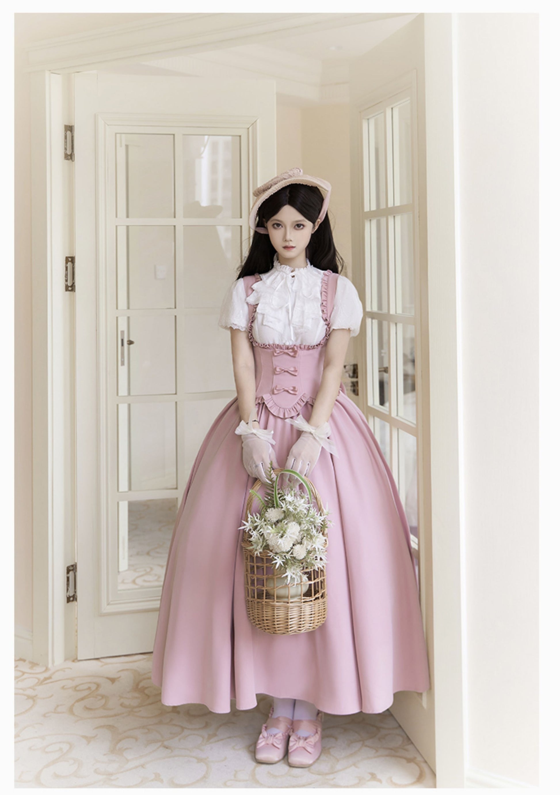 【限定特別価格】クラシカルリボンジャンパースカート・グレー +パニエ