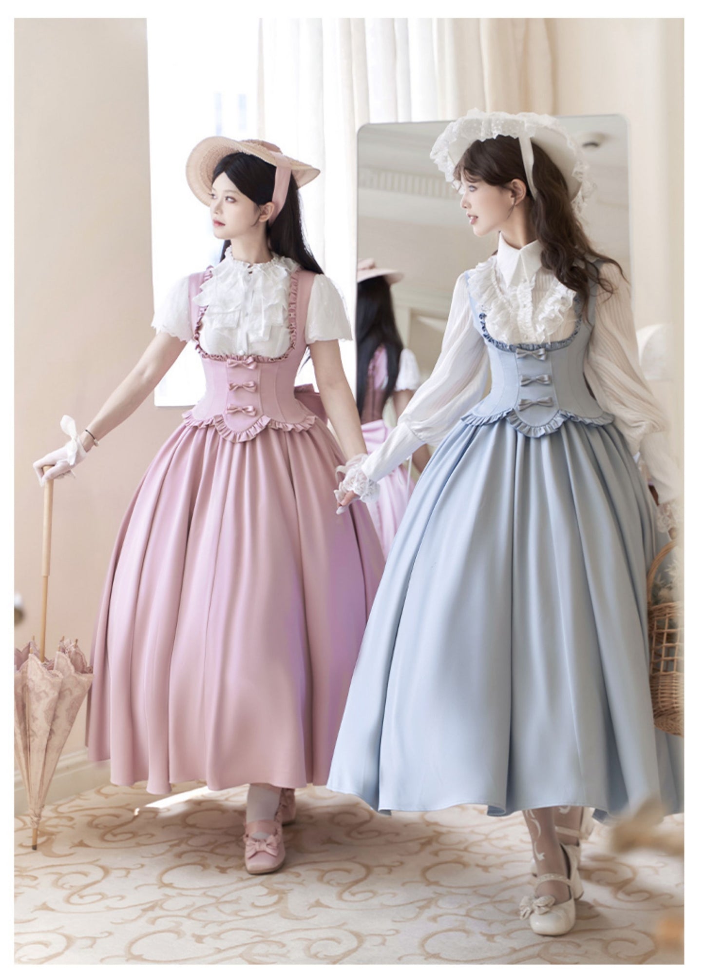 コルセットデザインにロング丈がシックな印象のジャンパースカート。