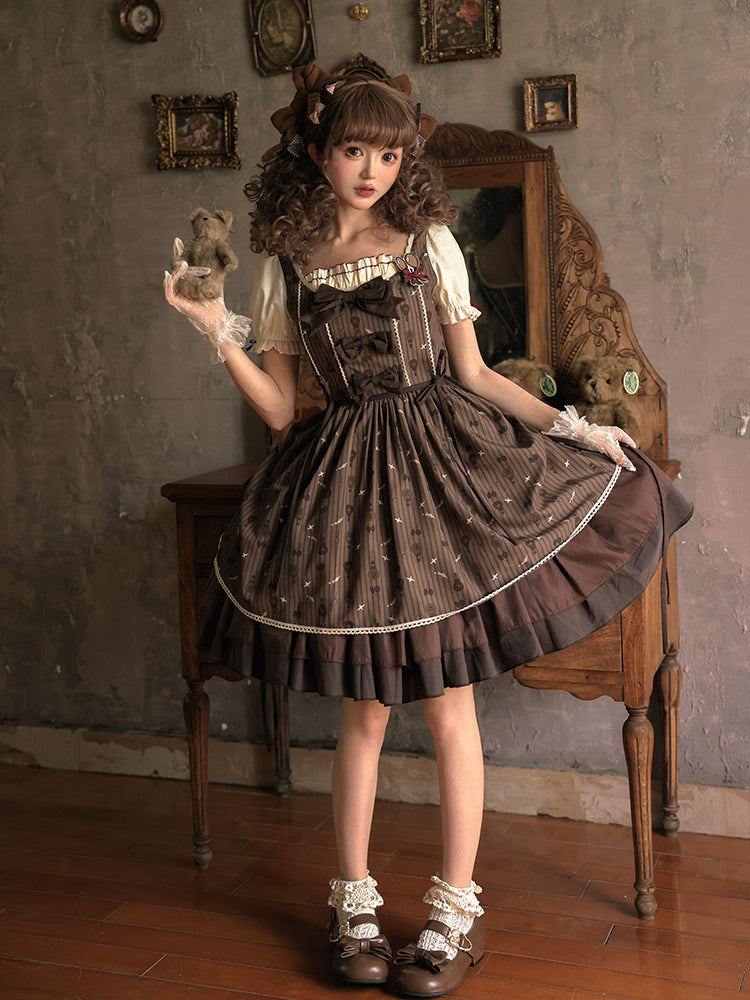 【限定特別価格】クラシカルリボンジャンパースカート・グレー +パニエ