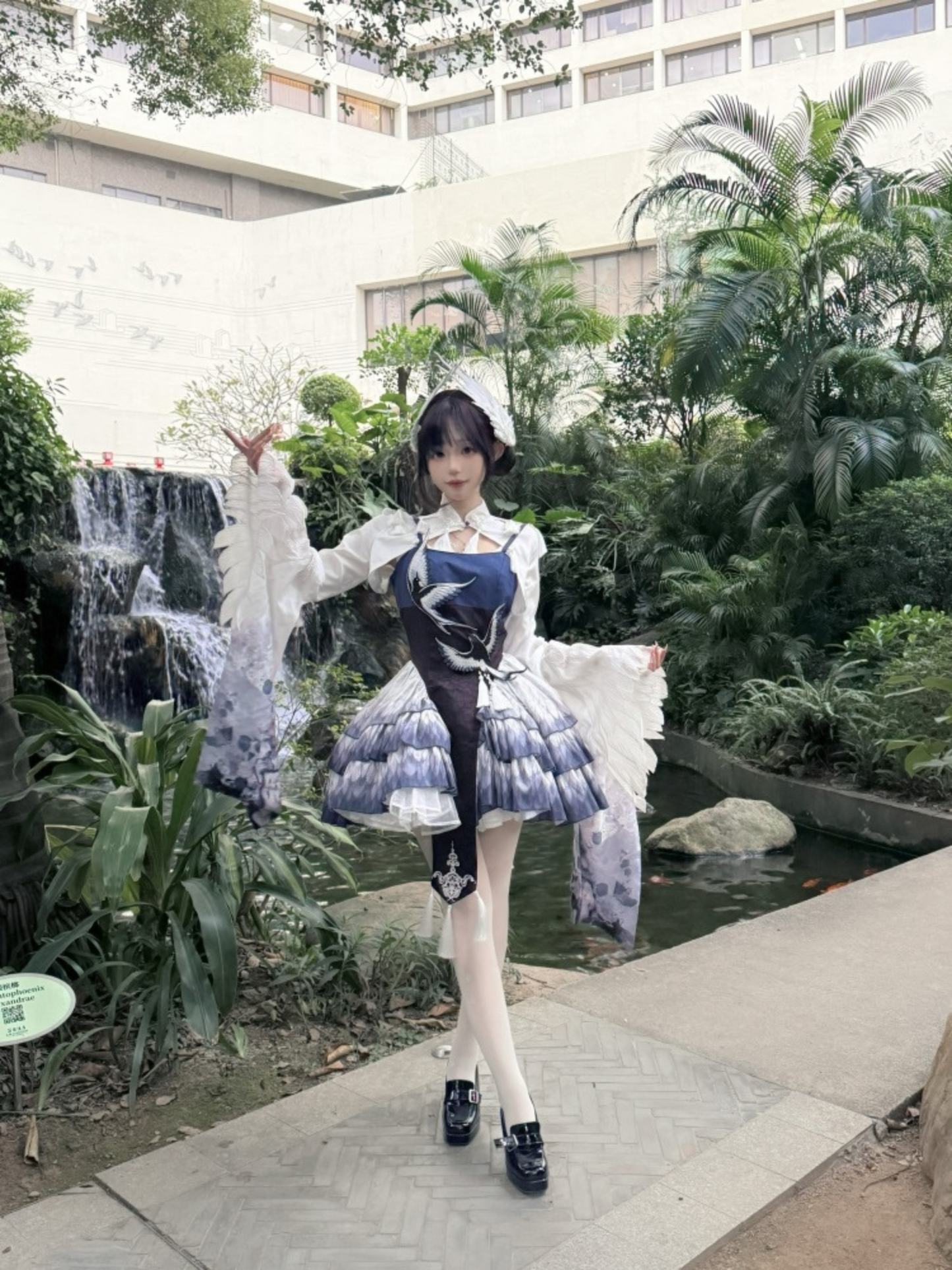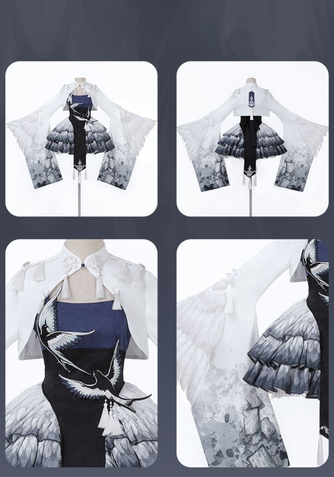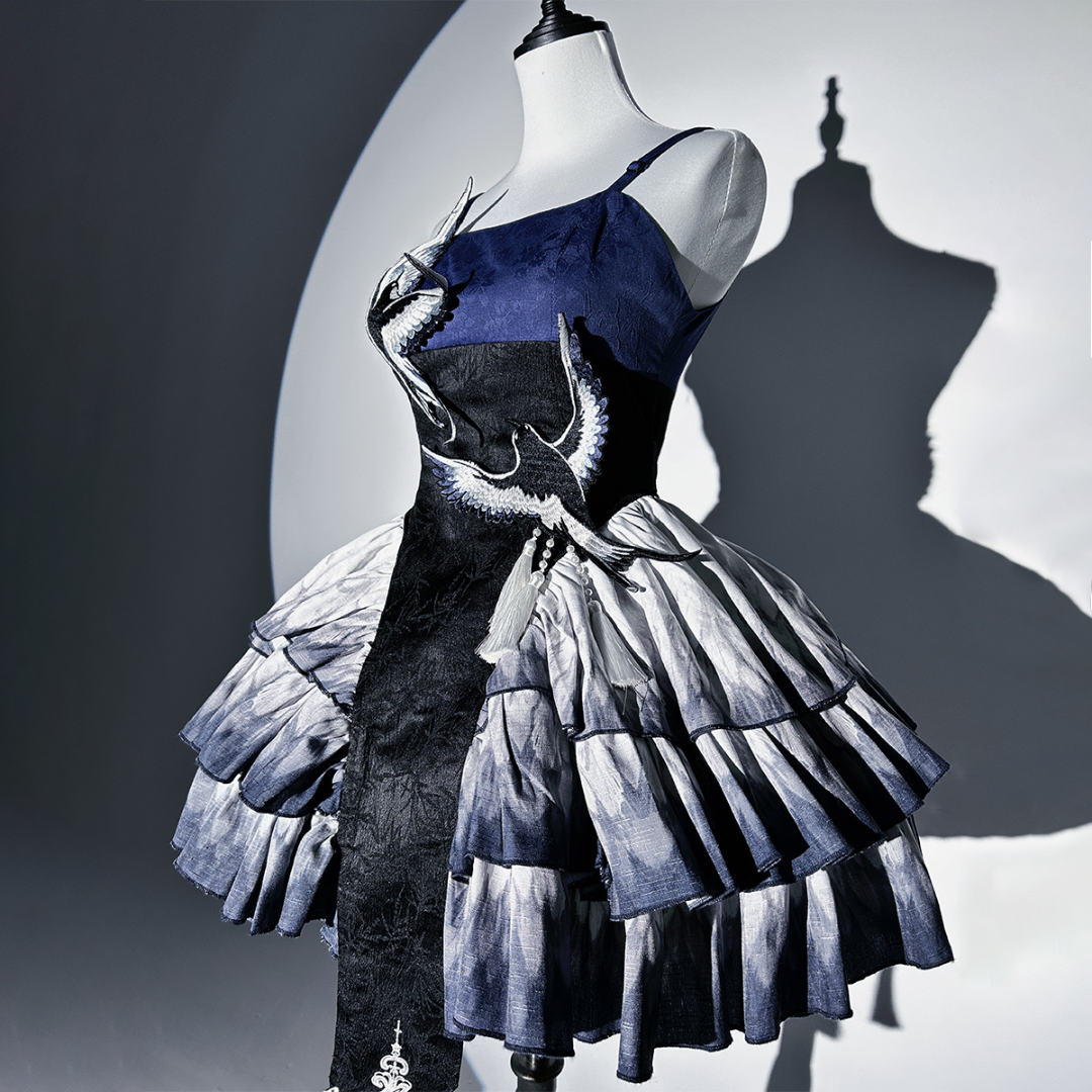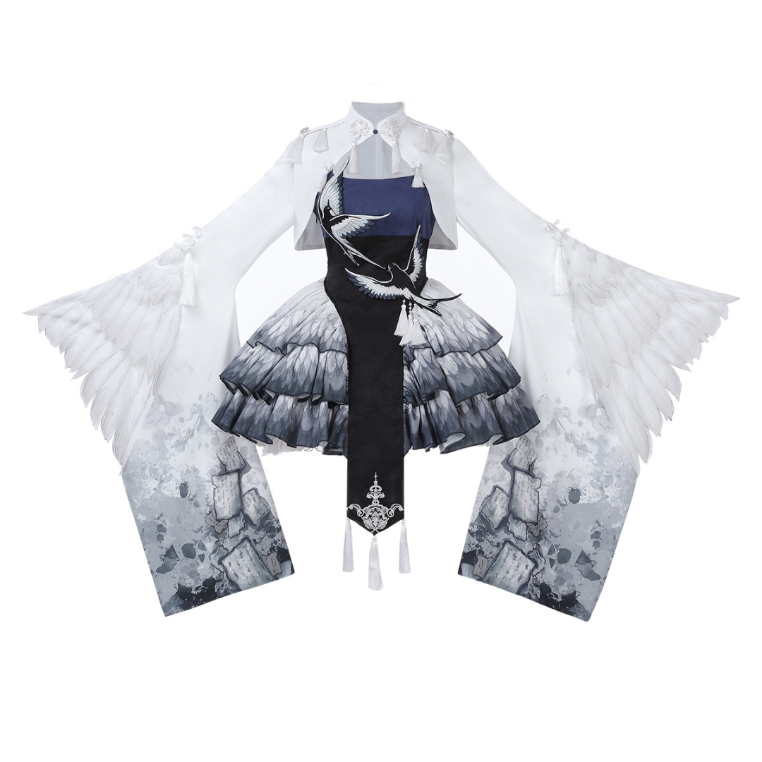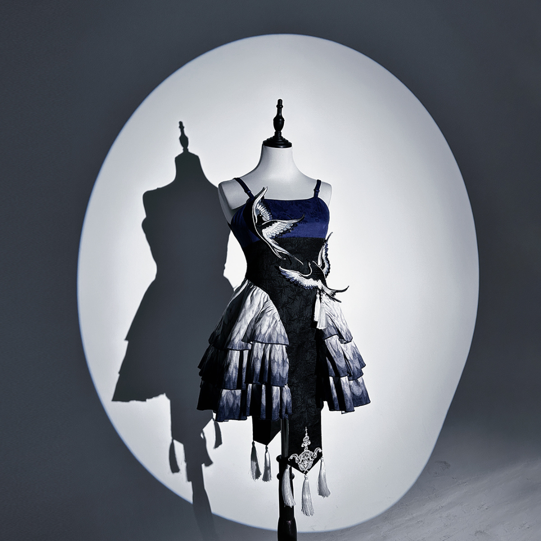 胸元には青い鳥、スカート部分には羽のプリント、トップスのお袖はまるで本物の鳥のようなデザインです✨