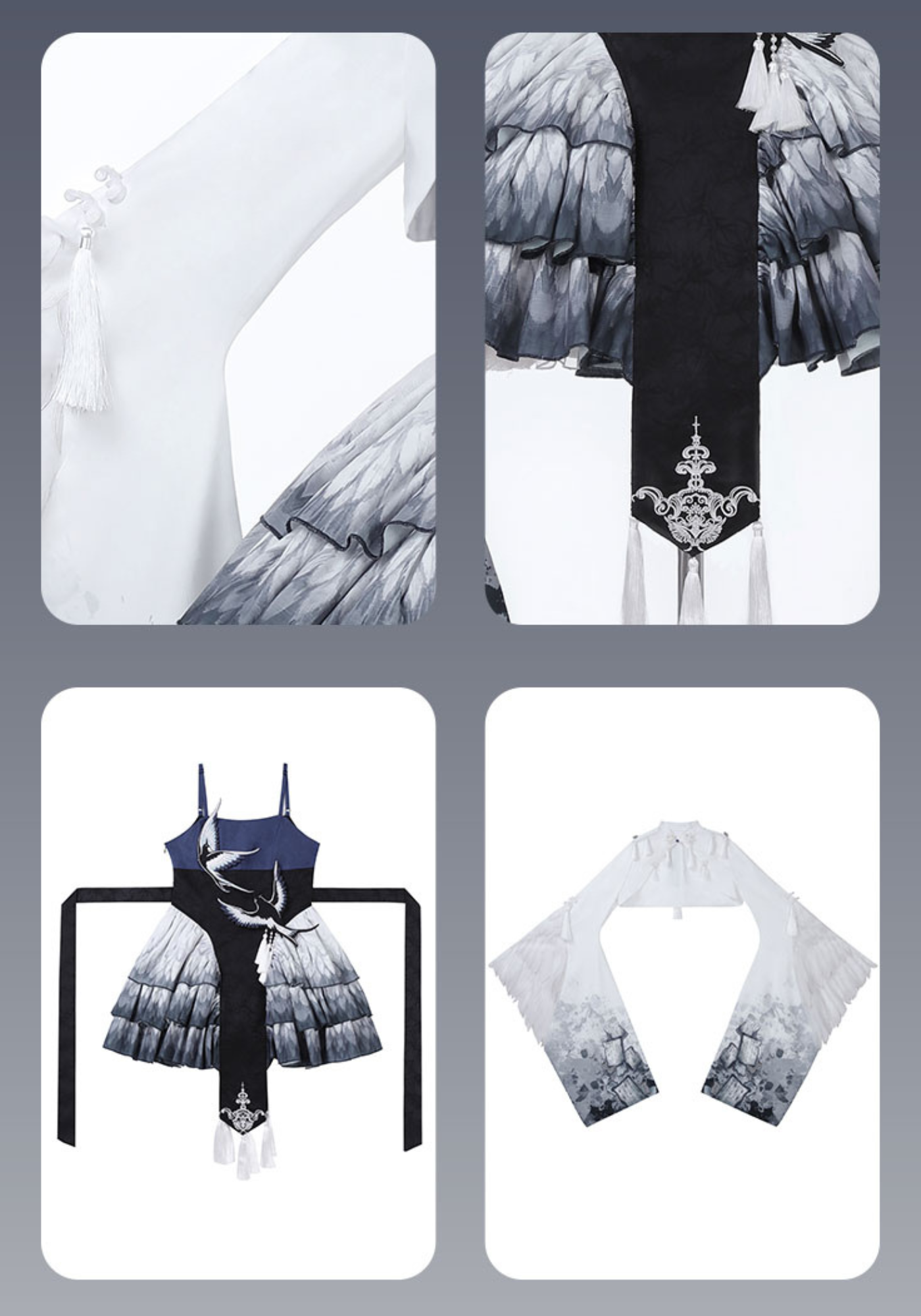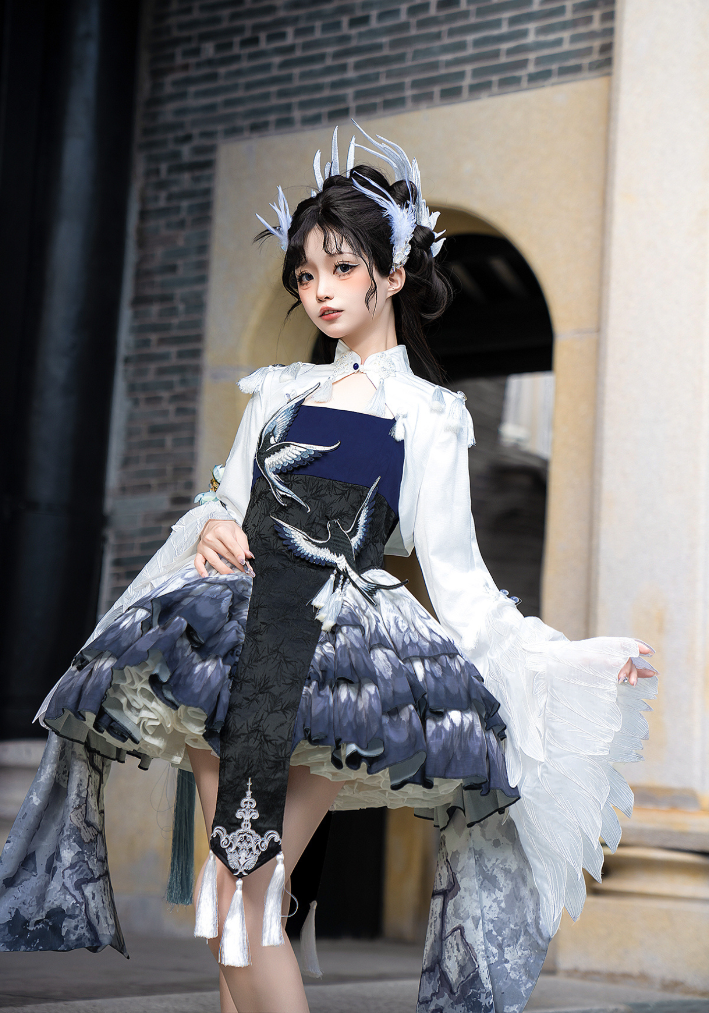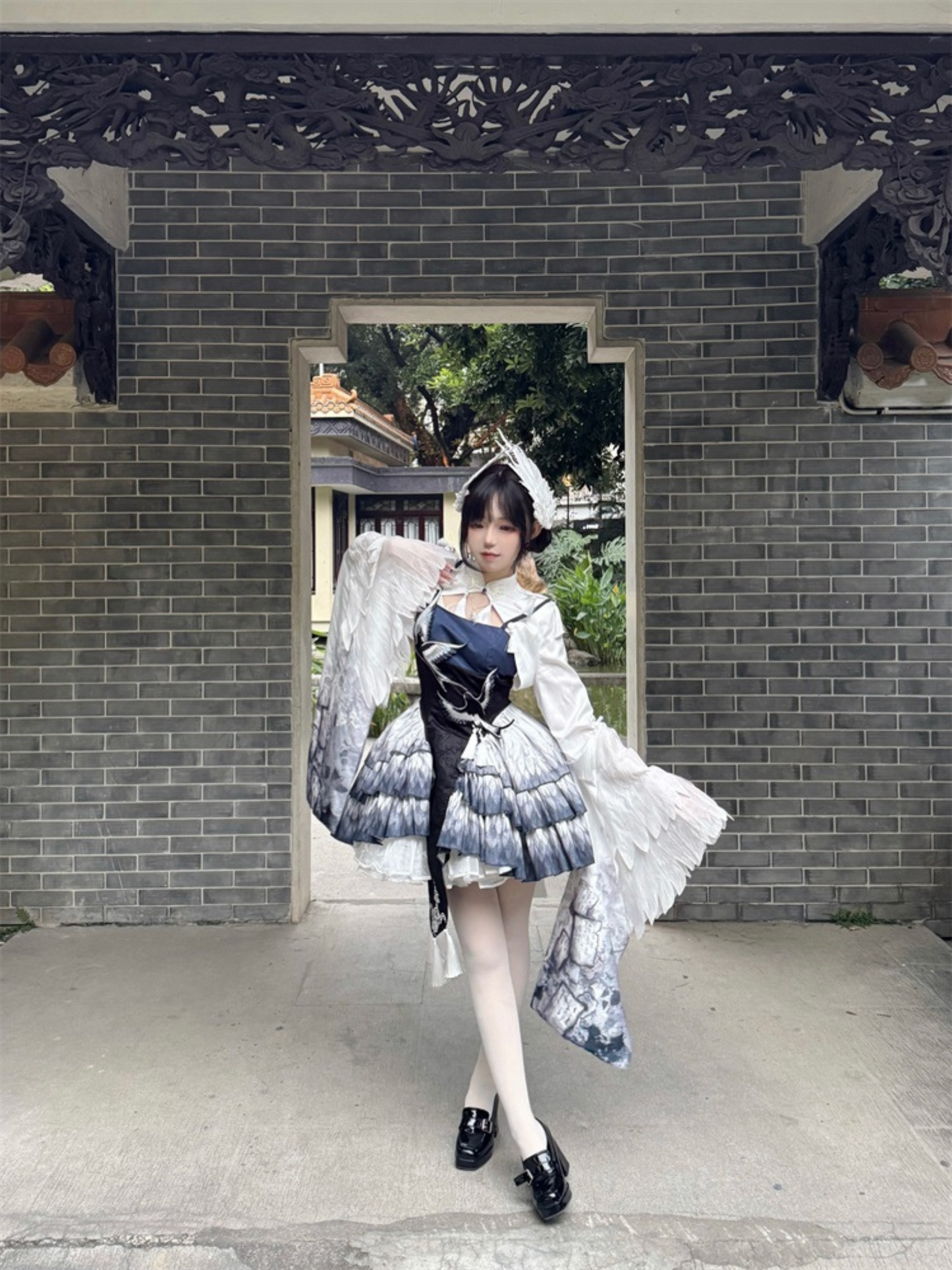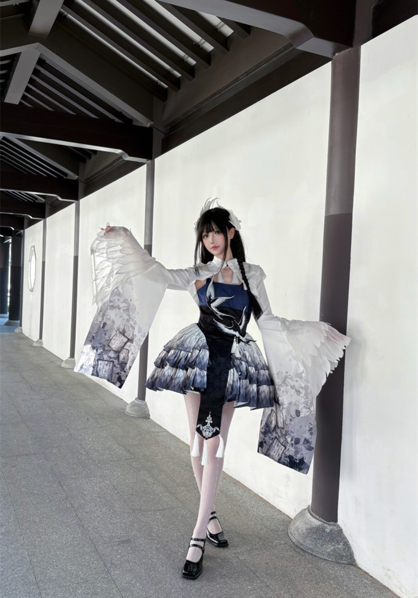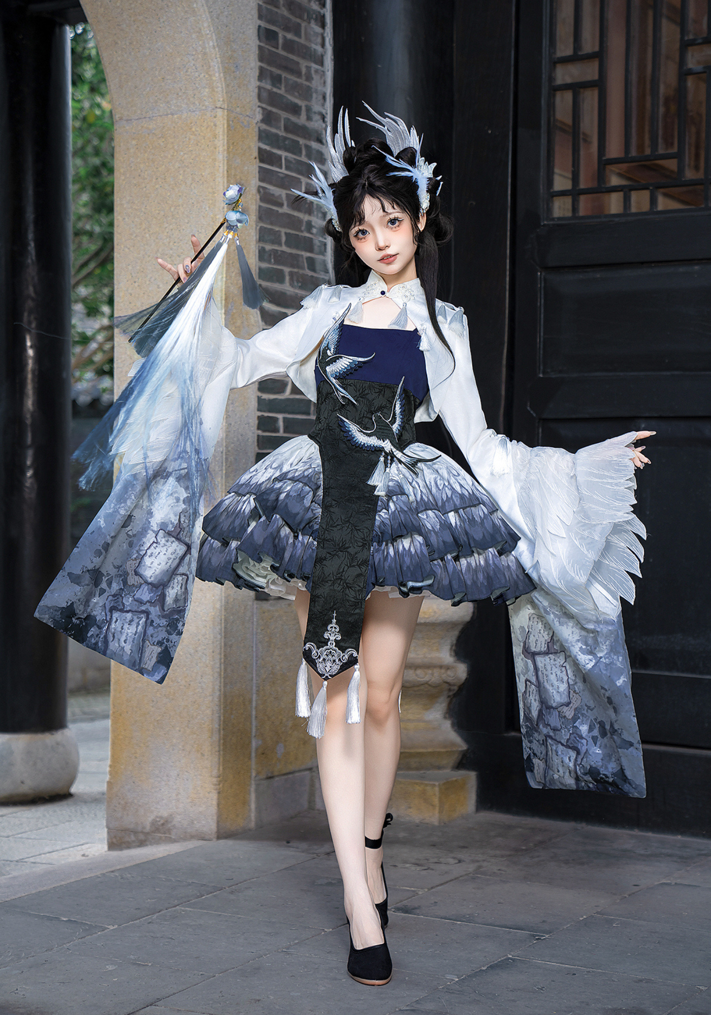 胸元には青い鳥、スカート部分には羽のプリント、トップスのお袖はまるで本物の鳥のようなデザインです✨