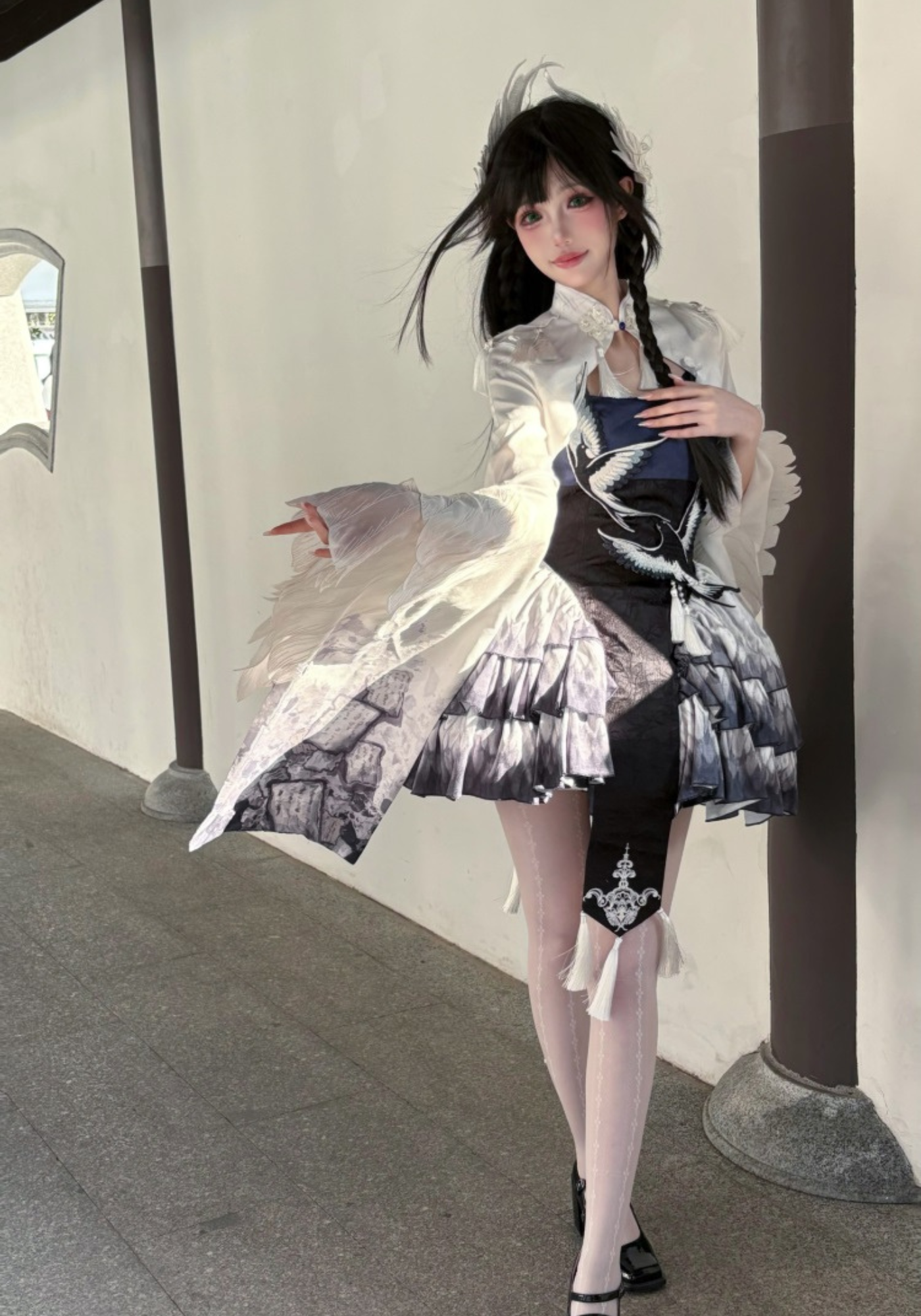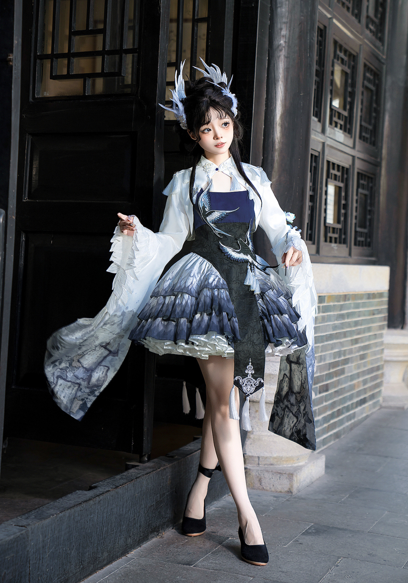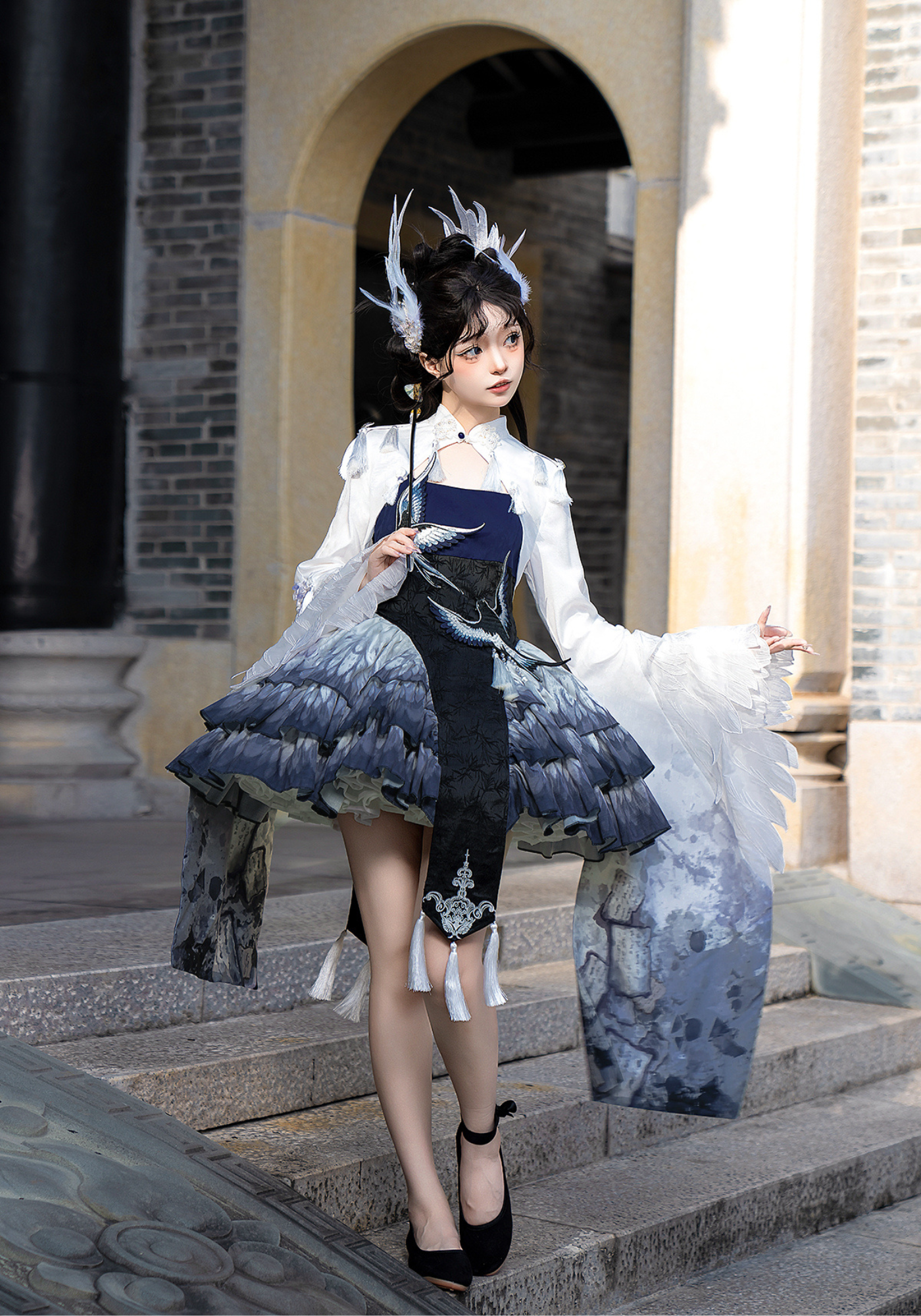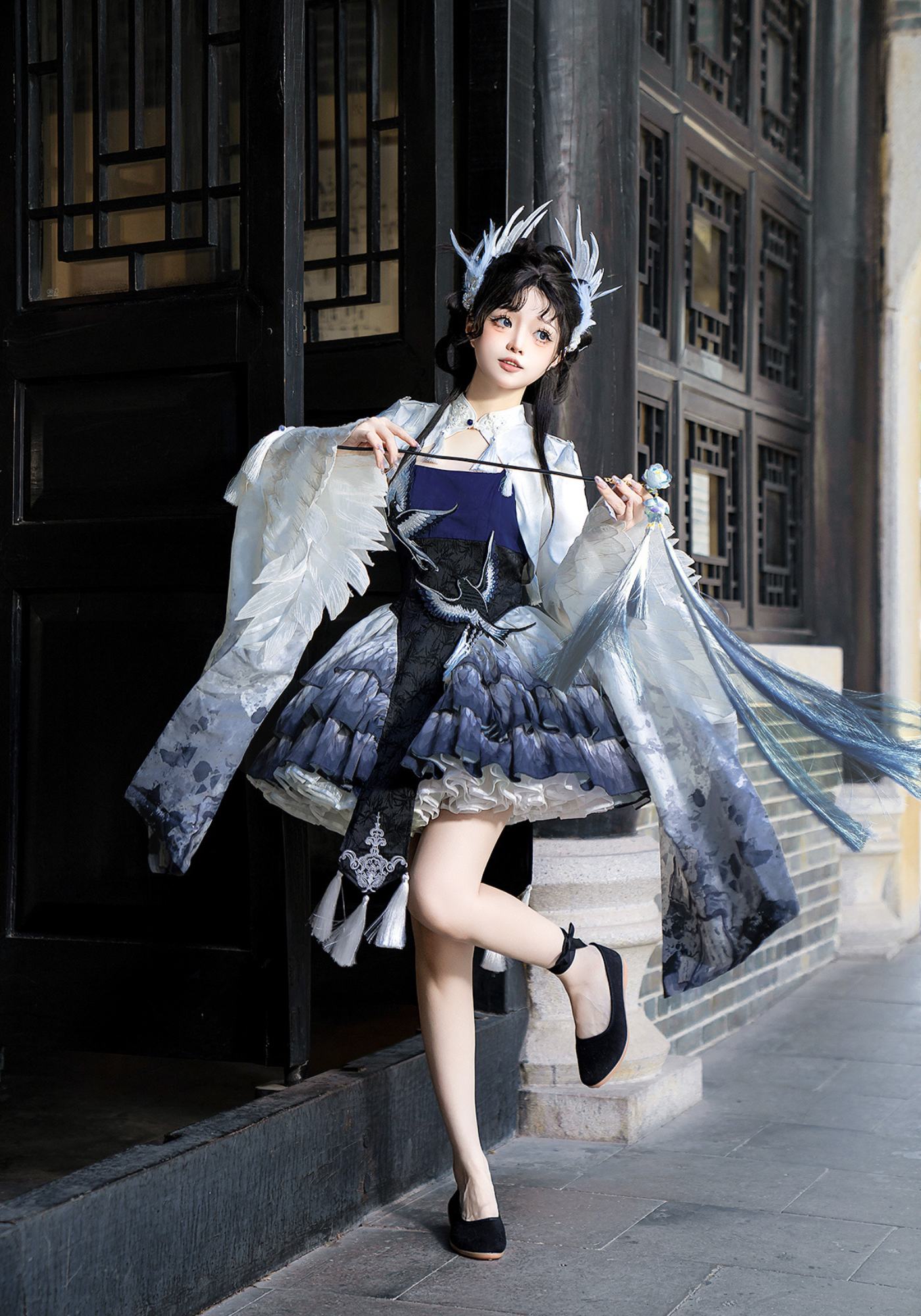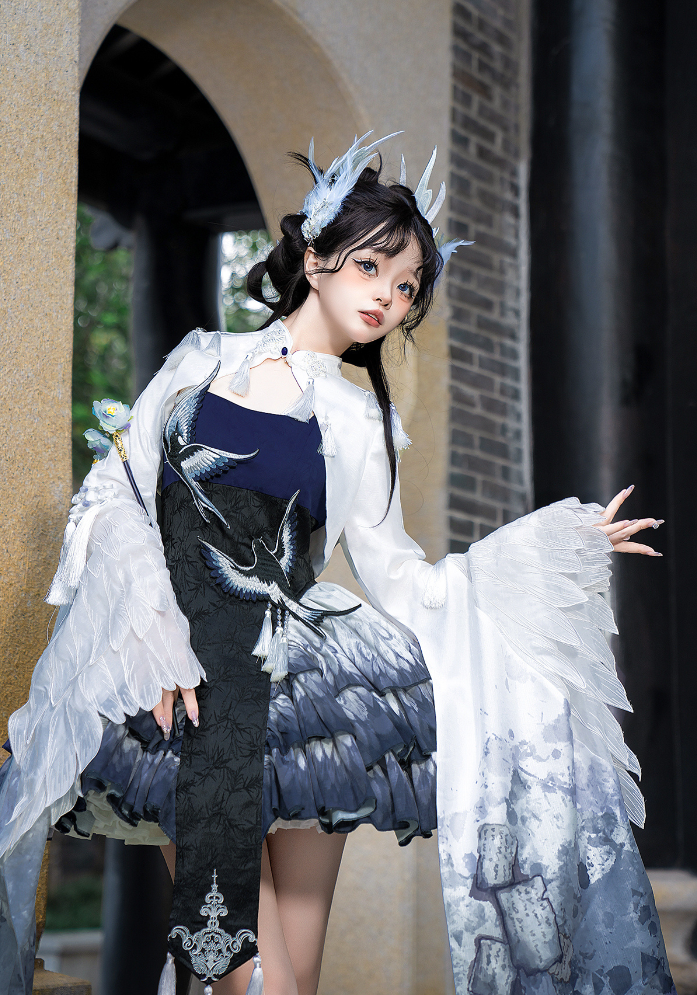 胸元には青い鳥、スカート部分には羽のプリント、トップスのお袖はまるで本物の鳥のようなデザインです✨