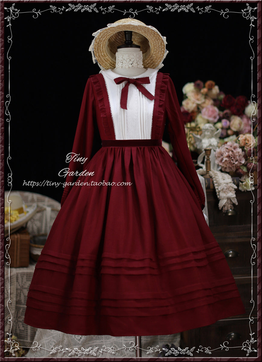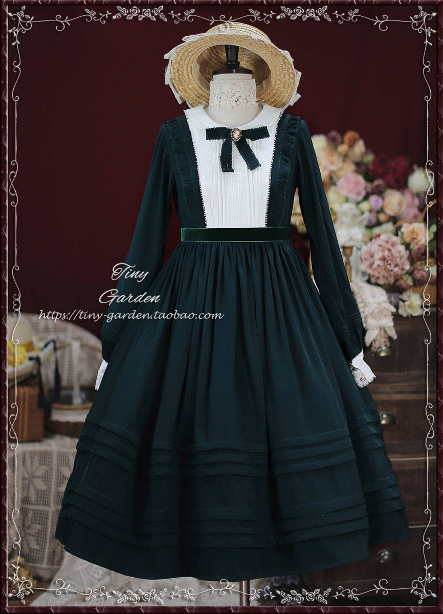 胸元や袖口の白が華やかさと清潔感をプラス。着るだけで英国のお嬢様になれるクラシカルなワンピースです。
