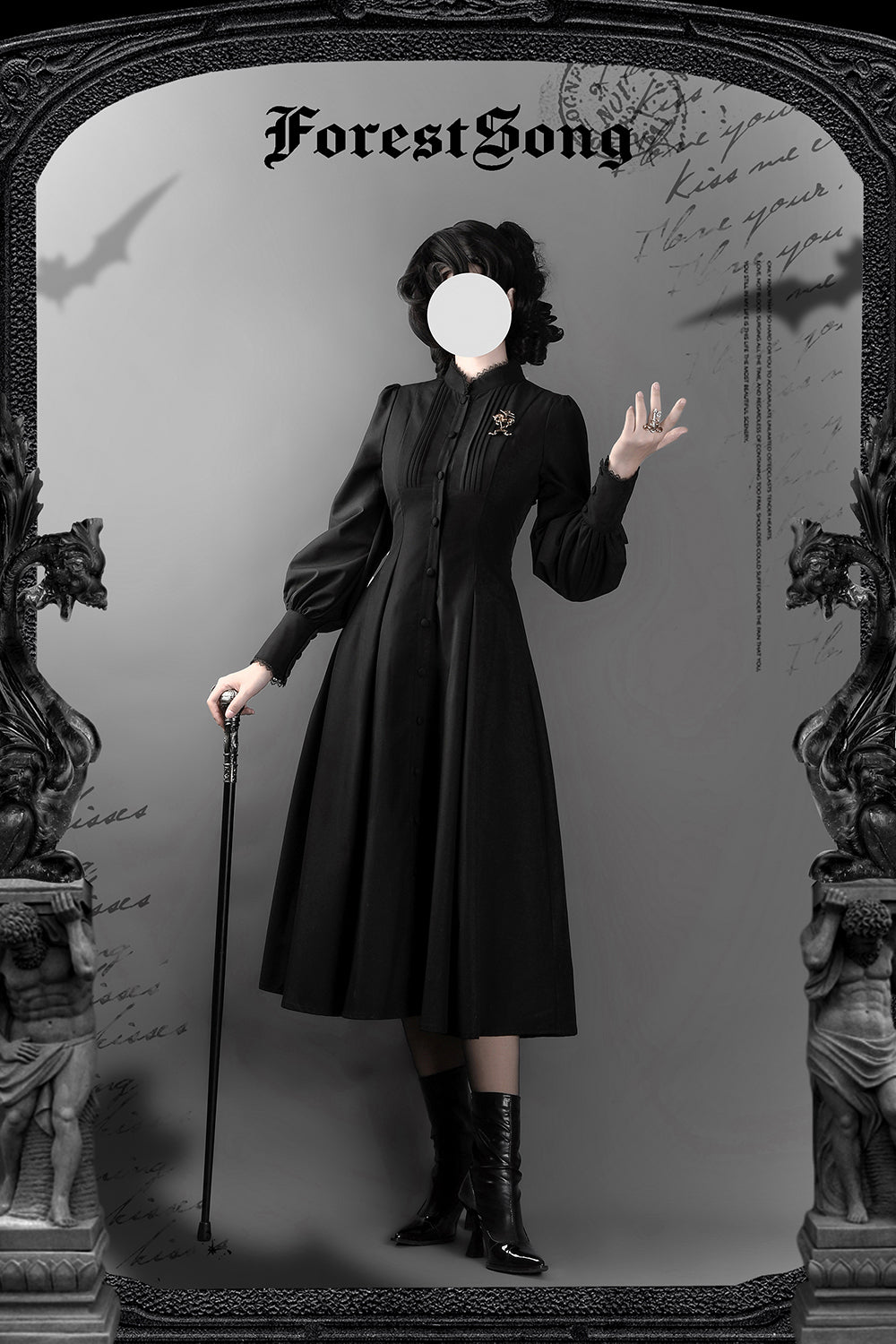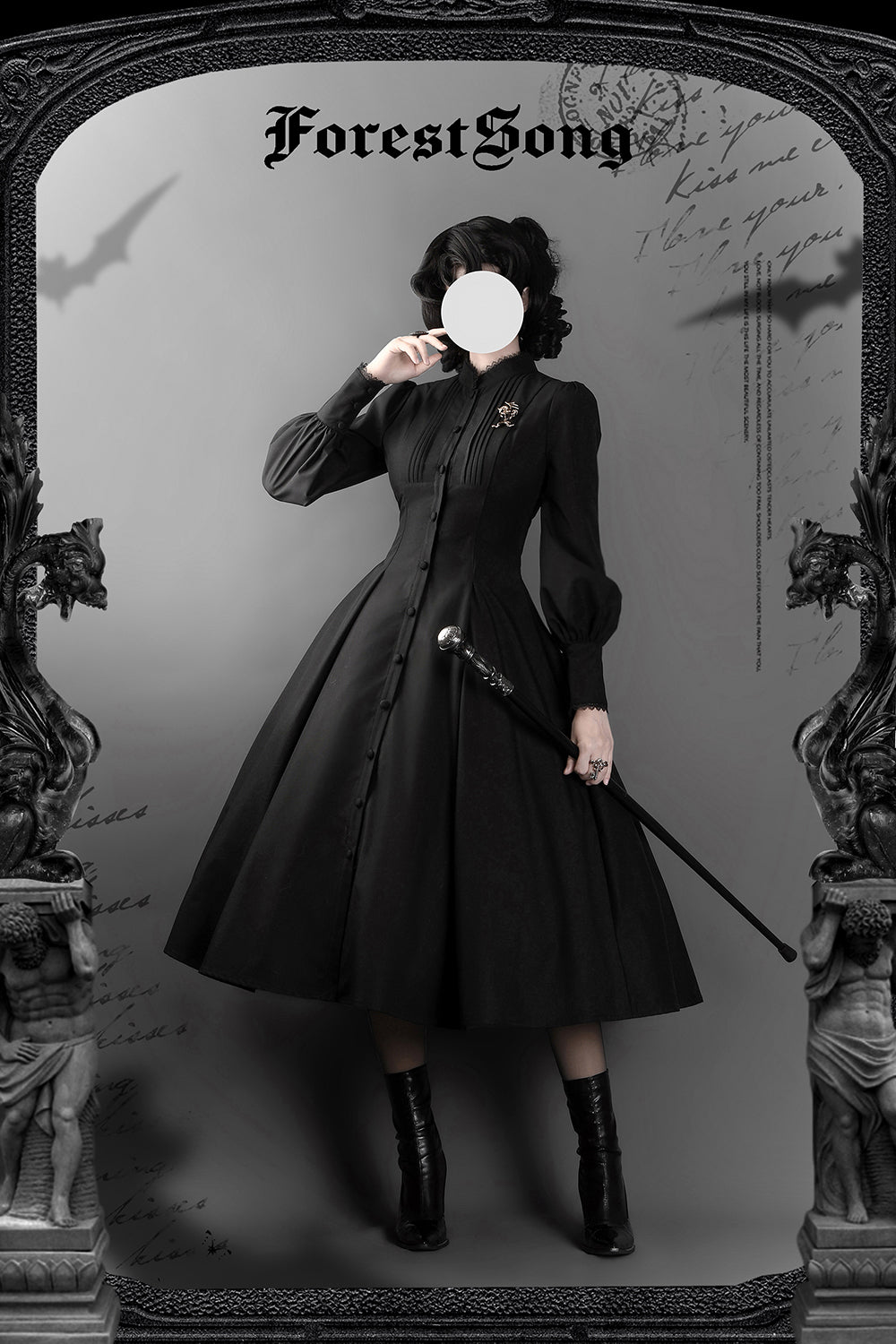 【予約販売】蛇と薔薇刺繍のシスター風ワンピースセット ロング丈