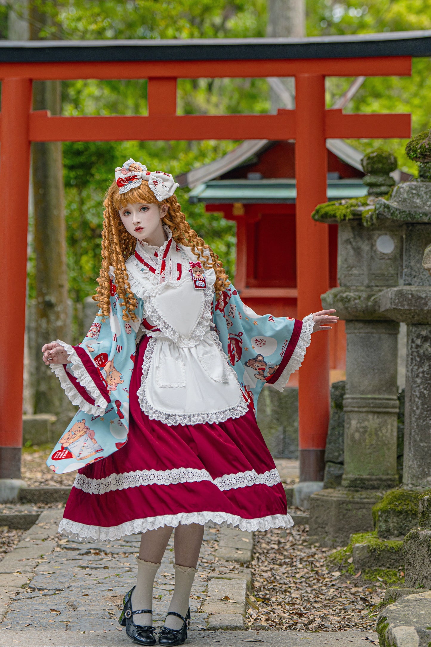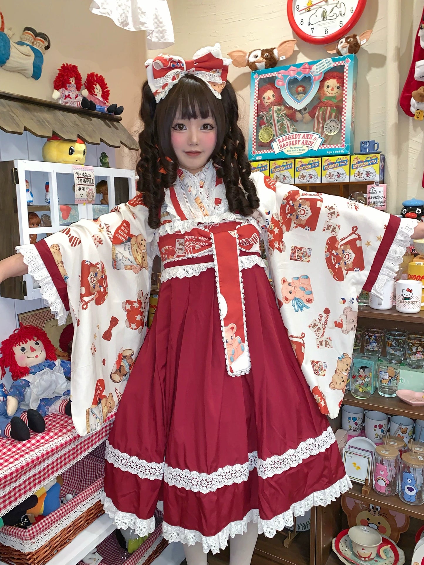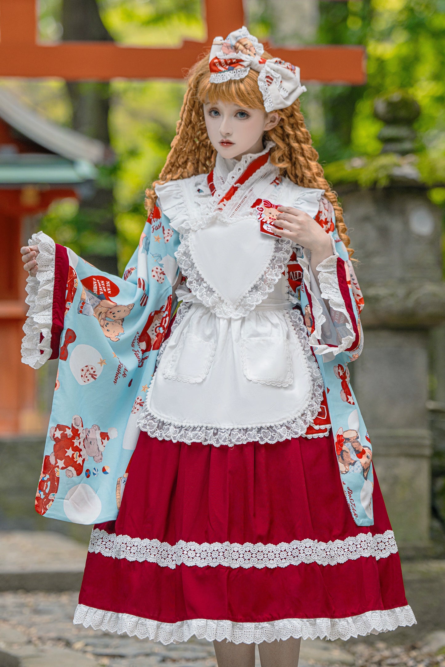 別売りのエプロンを合わせた和風メイドコーデもおすすめです。