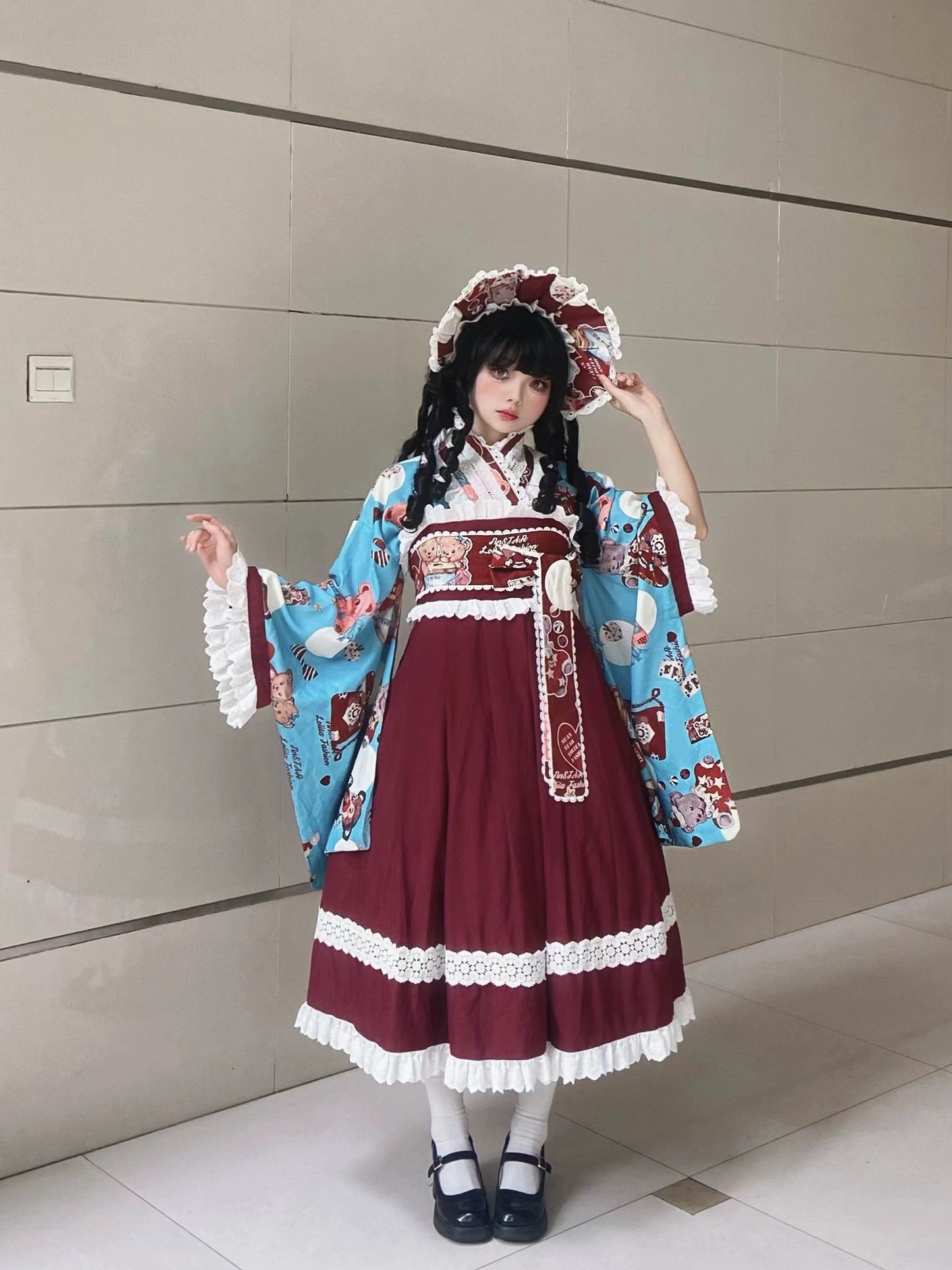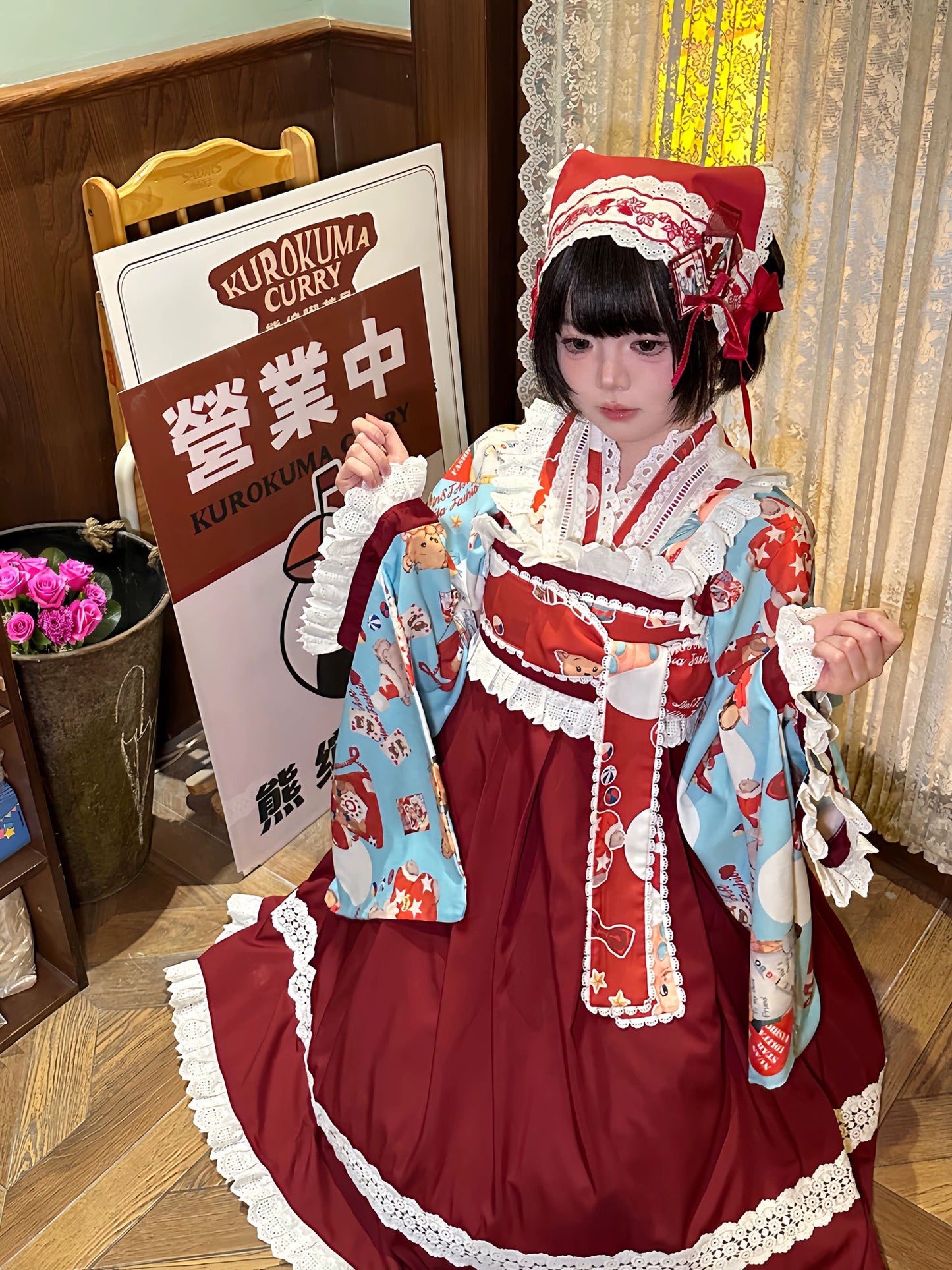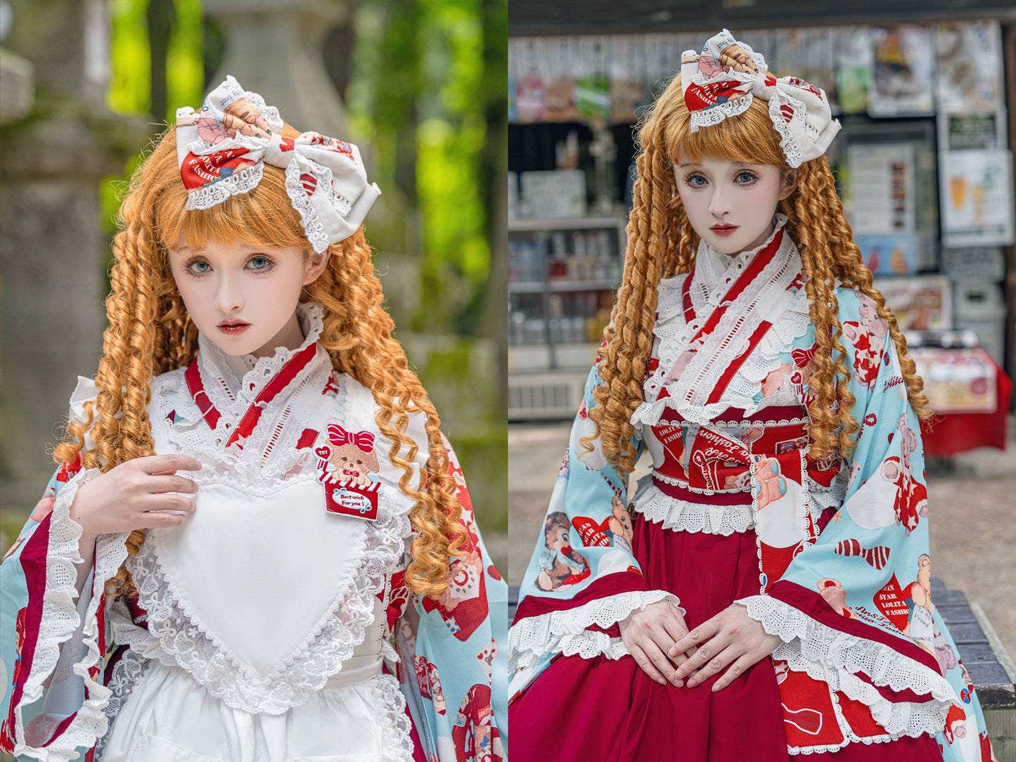 別売りのエプロンを合わせた和風メイドコーデもおすすめです。