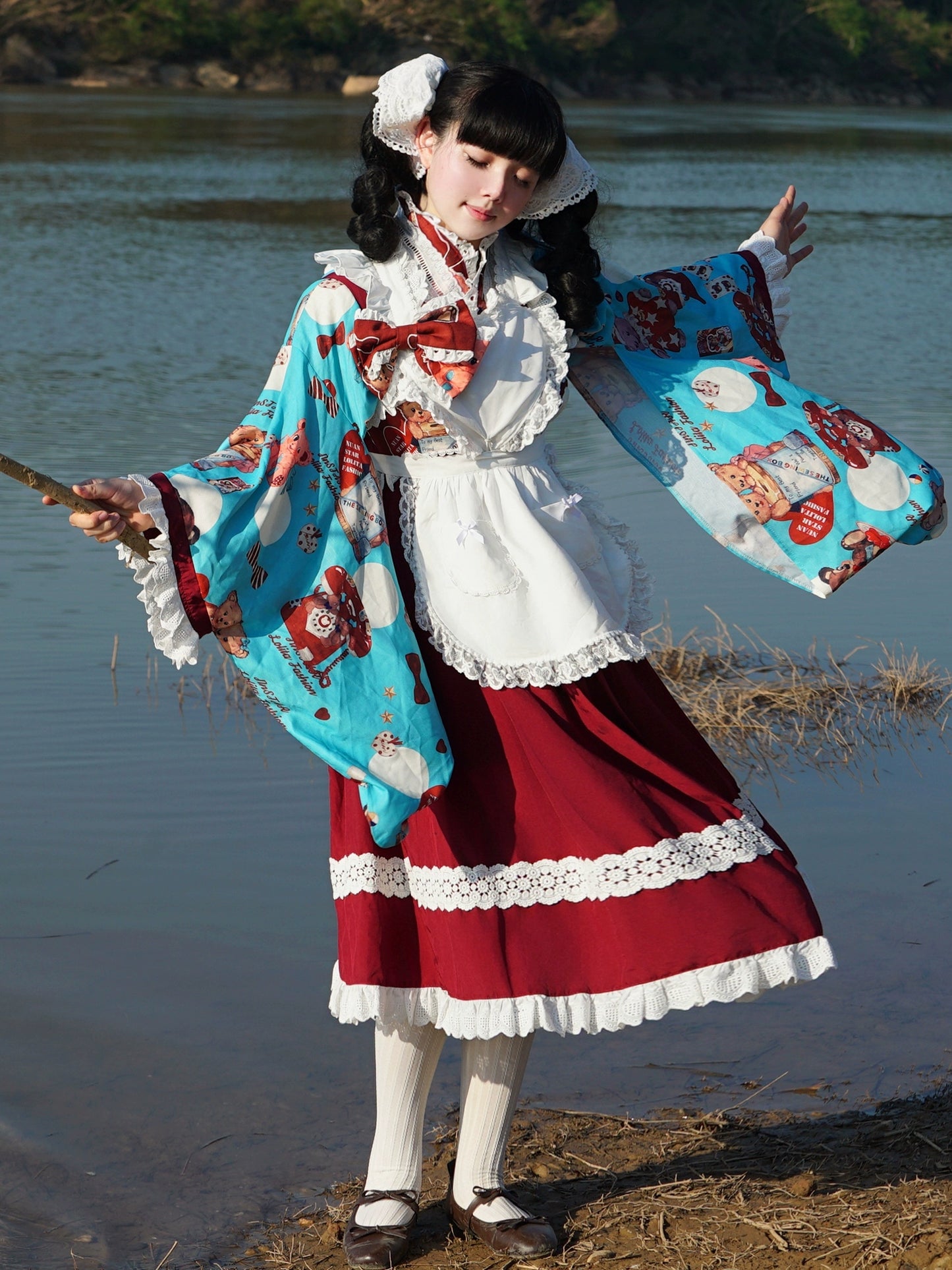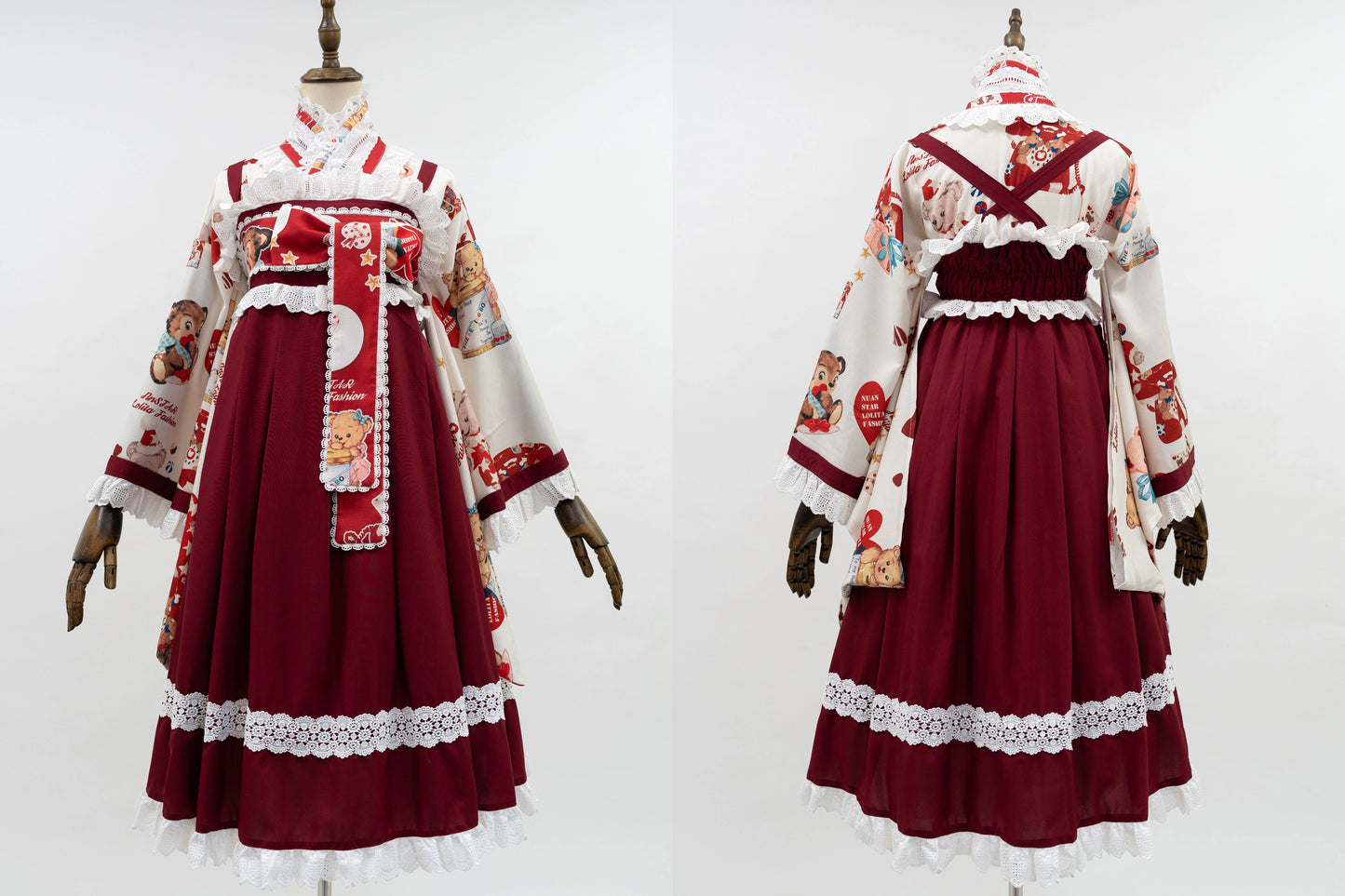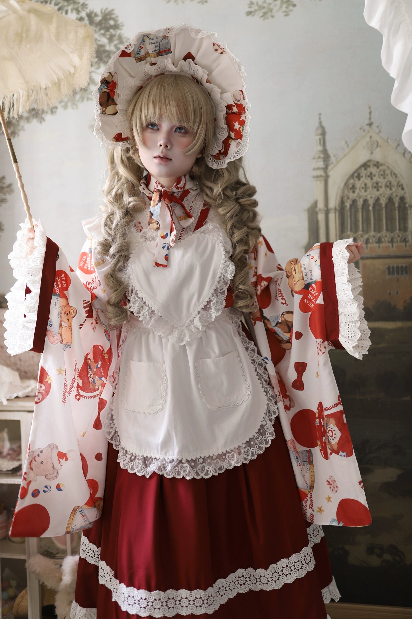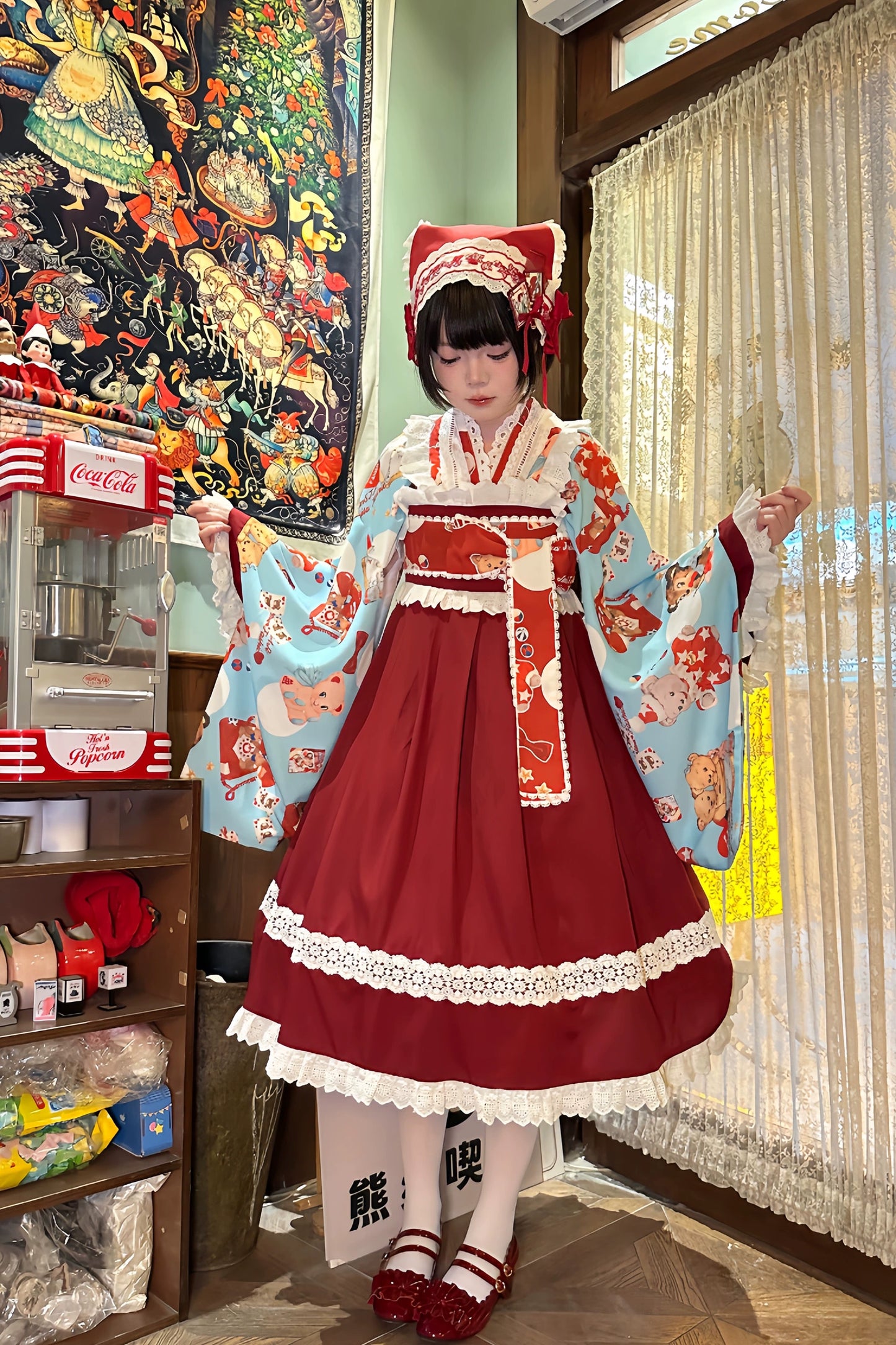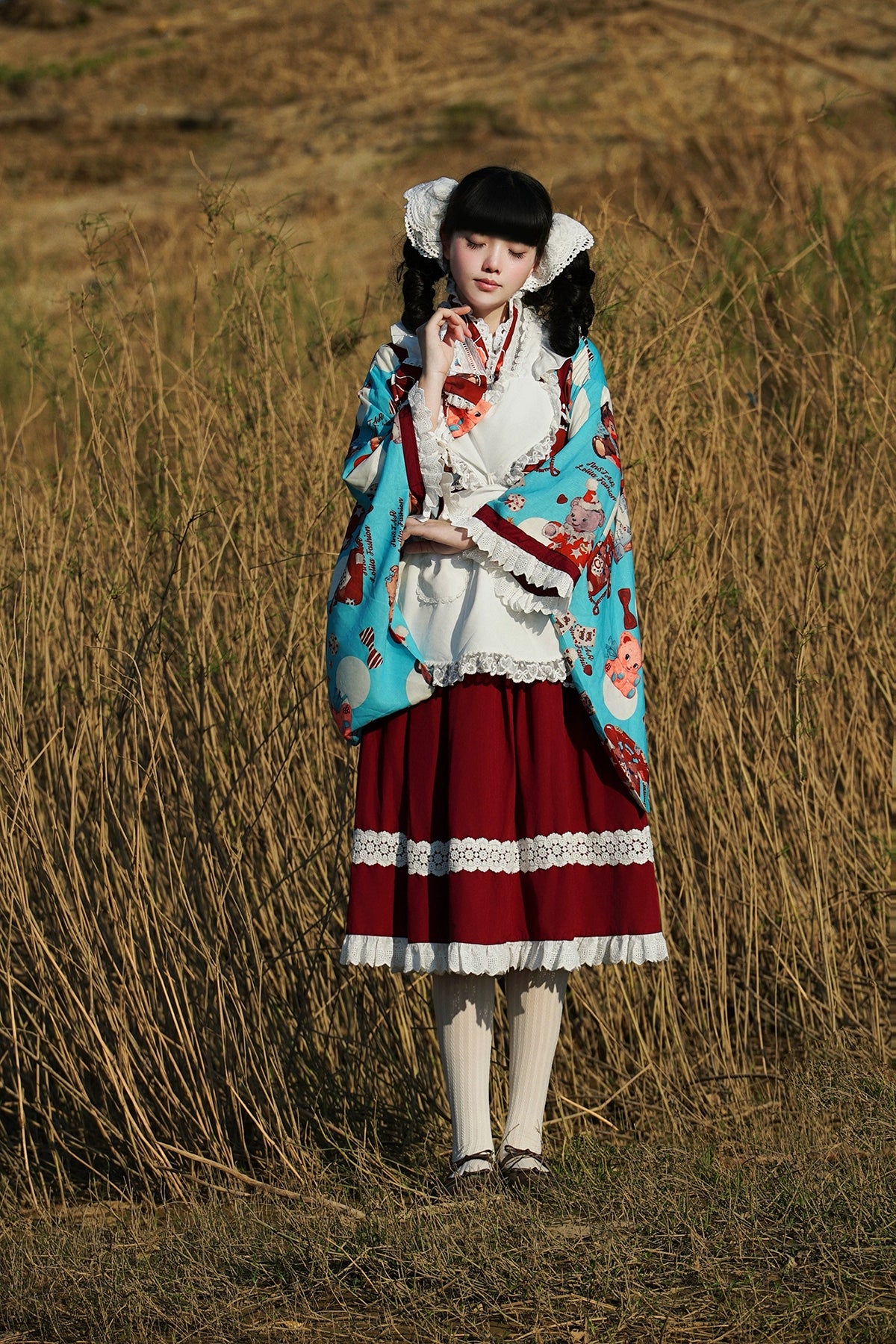 こちらは和風トップスと袴風ジャンパースカートのみの販売となります。エプロン、ヘアアクセサリー等は付属しません。