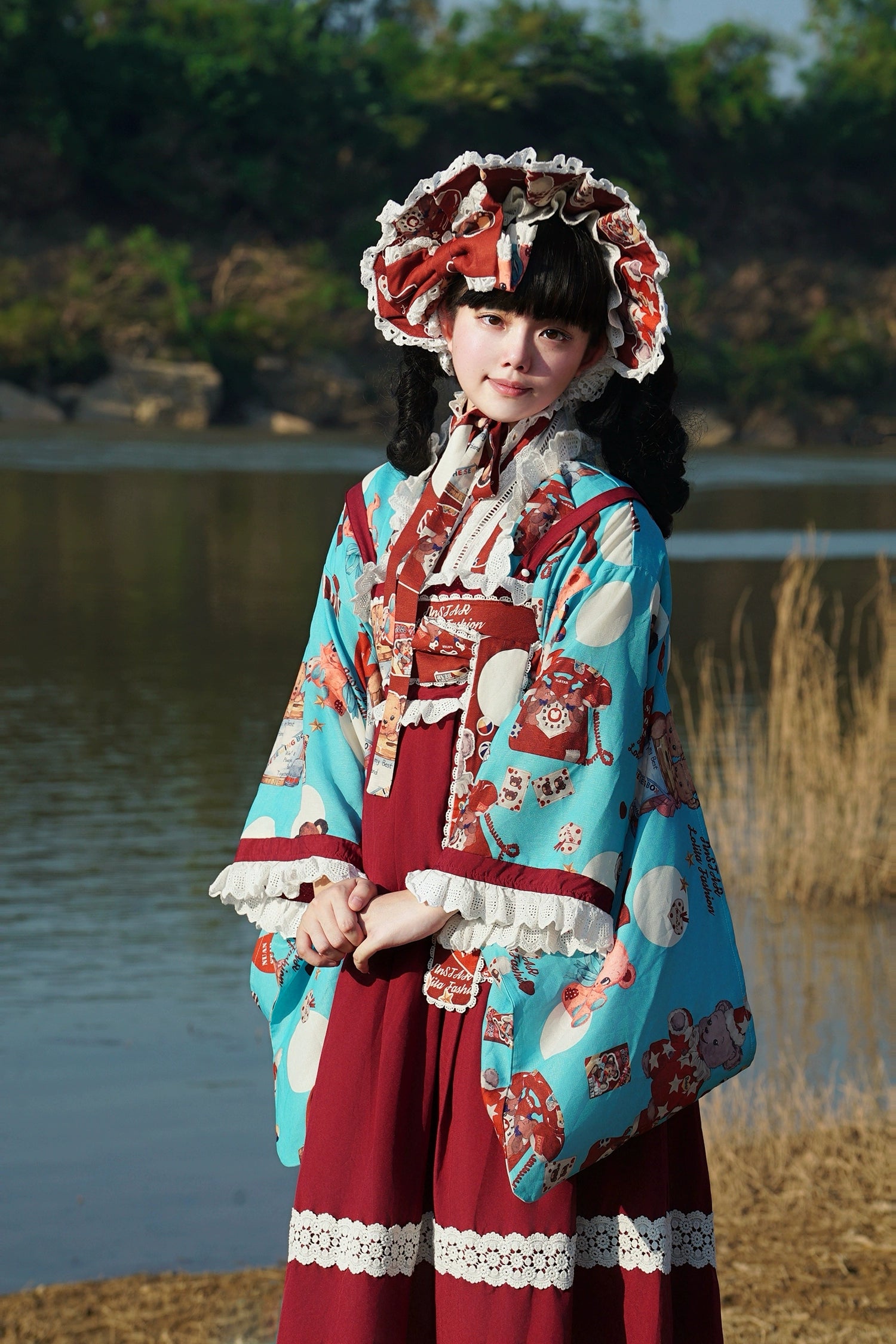 和風プリントとレースの着物風トップス【合わせ買いで20%オフ】