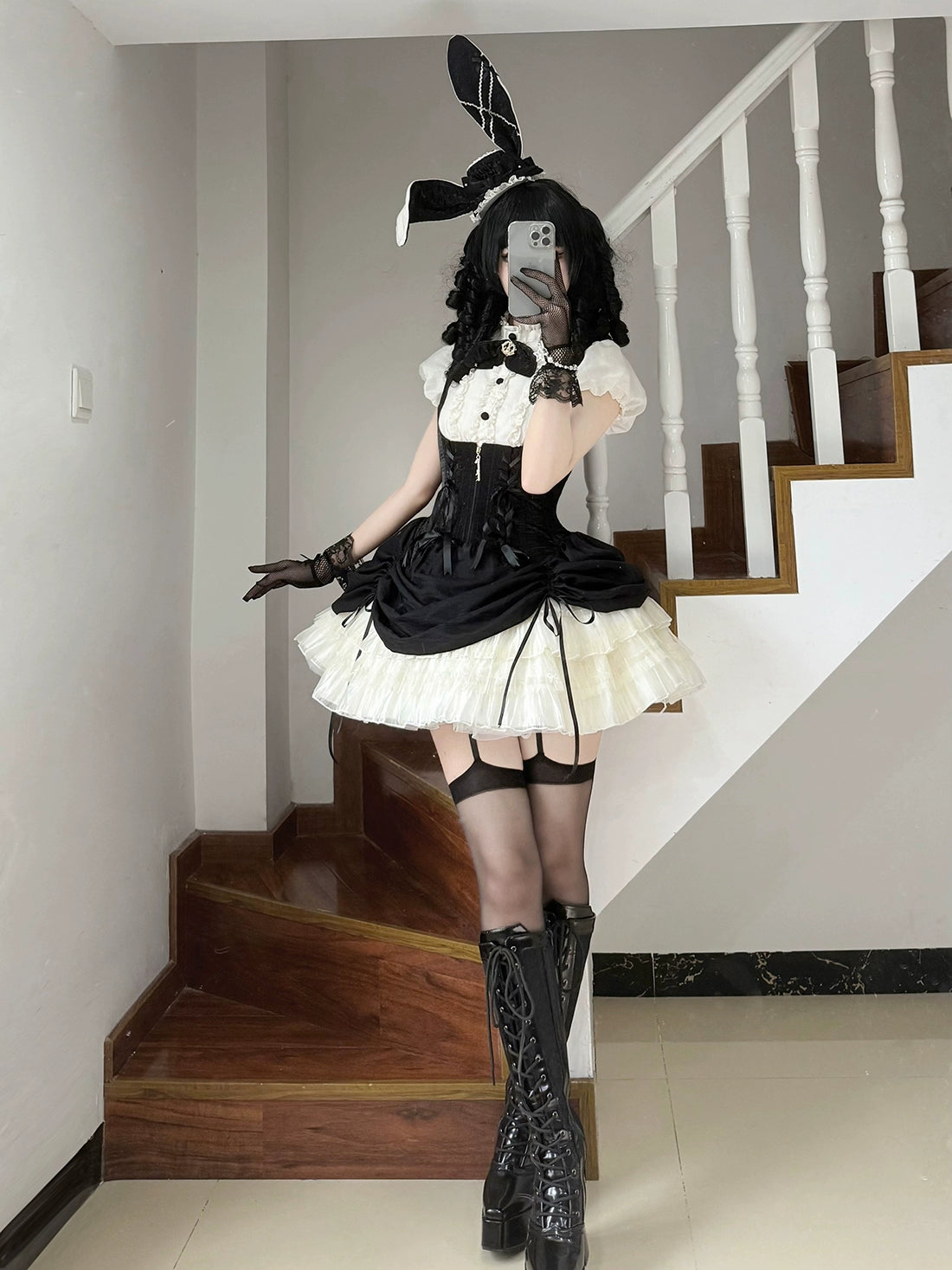 【受注予約6/30まで】Brulee Bunny コルセットジャンパースカートセット・ブラック
