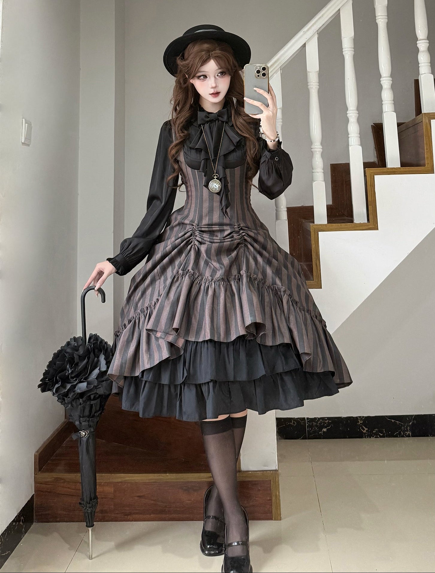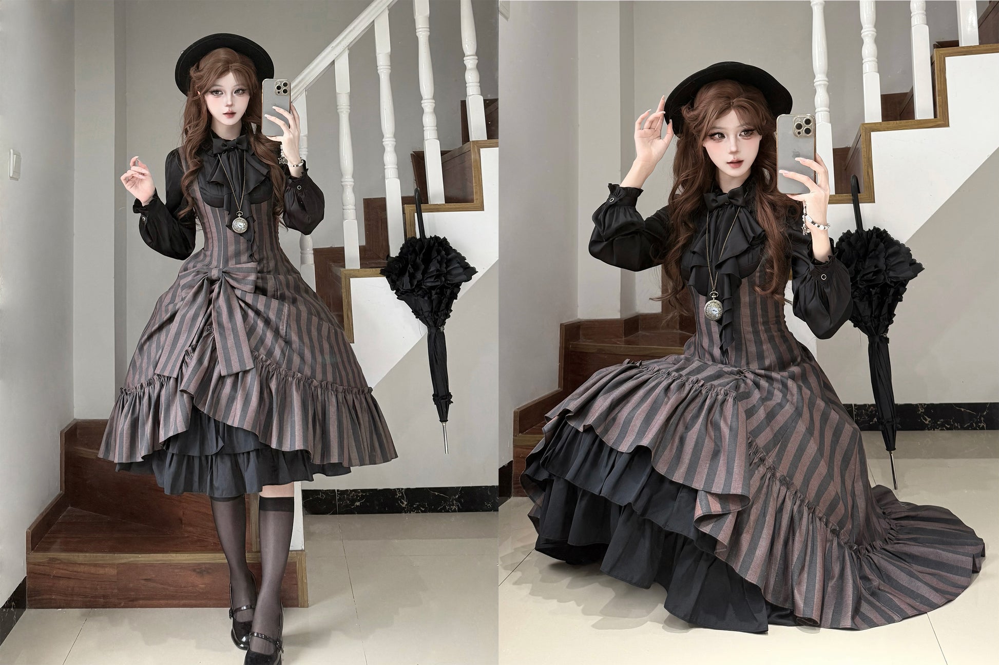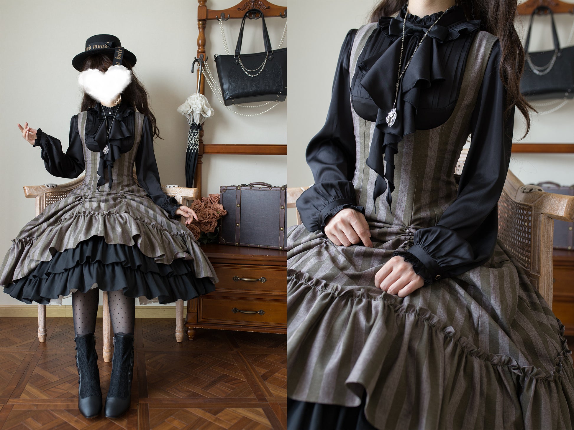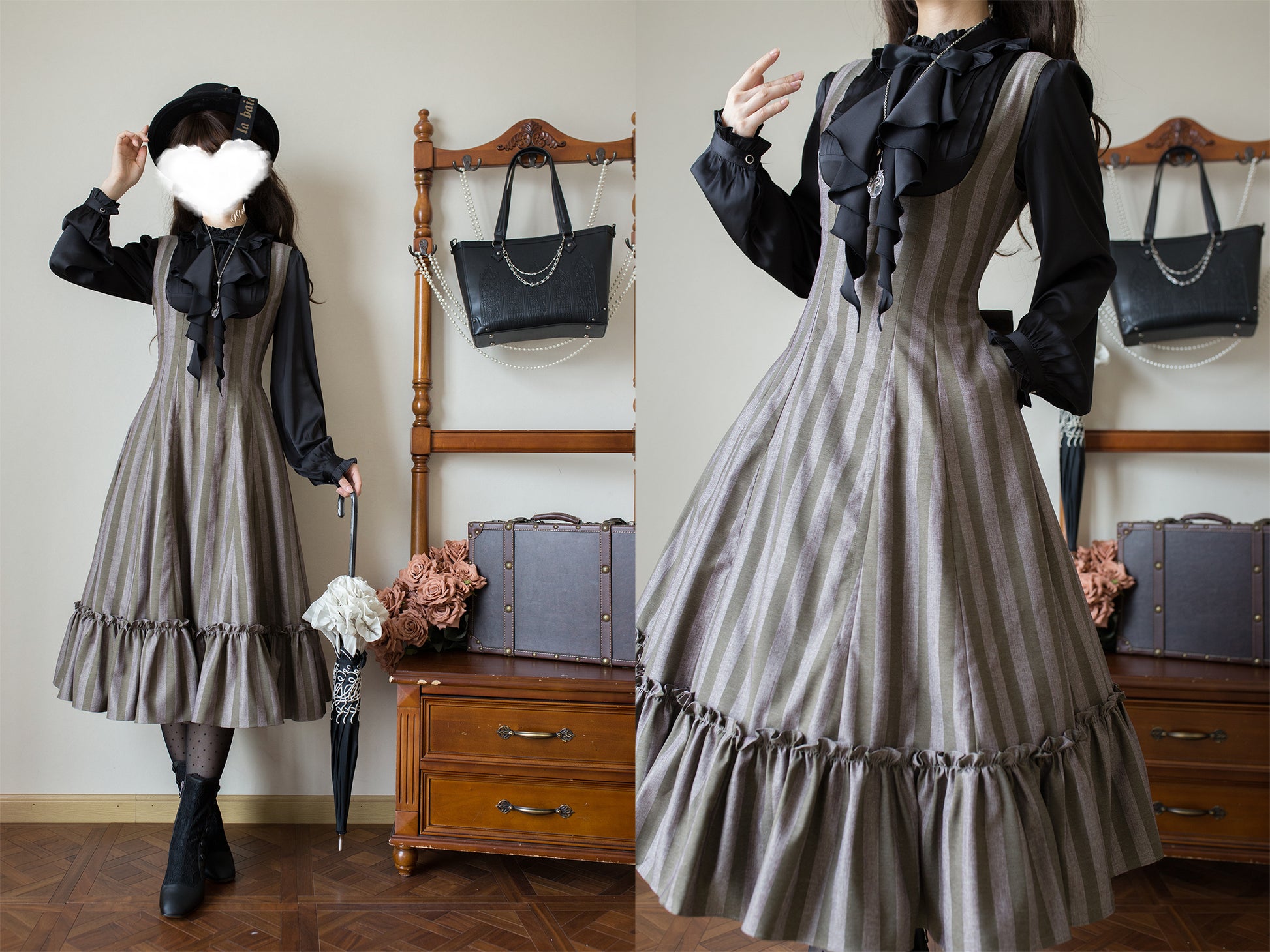 【受注予約12/3まで】Monochrome Reverie ジャンパースカート・ストライプ