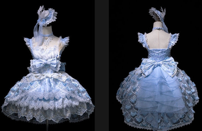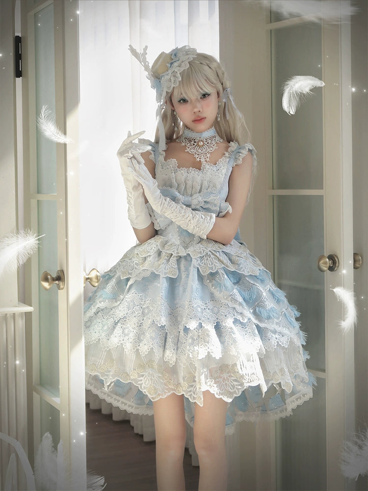 孔雀をイメージしてデザインされたミニドレス。パステルブルーは天使界隈さんにおすすめです✨