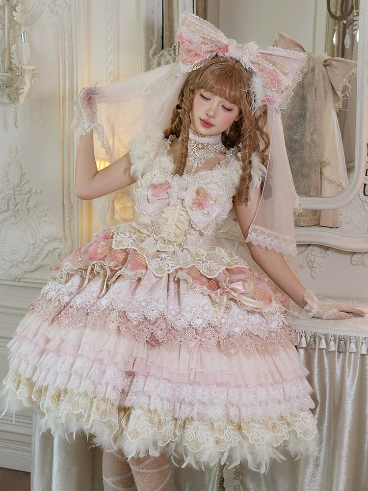 ふわふわの羽根やリボン、たっぷりレースでプリンセスのようなロリィタコーデが楽しめます。