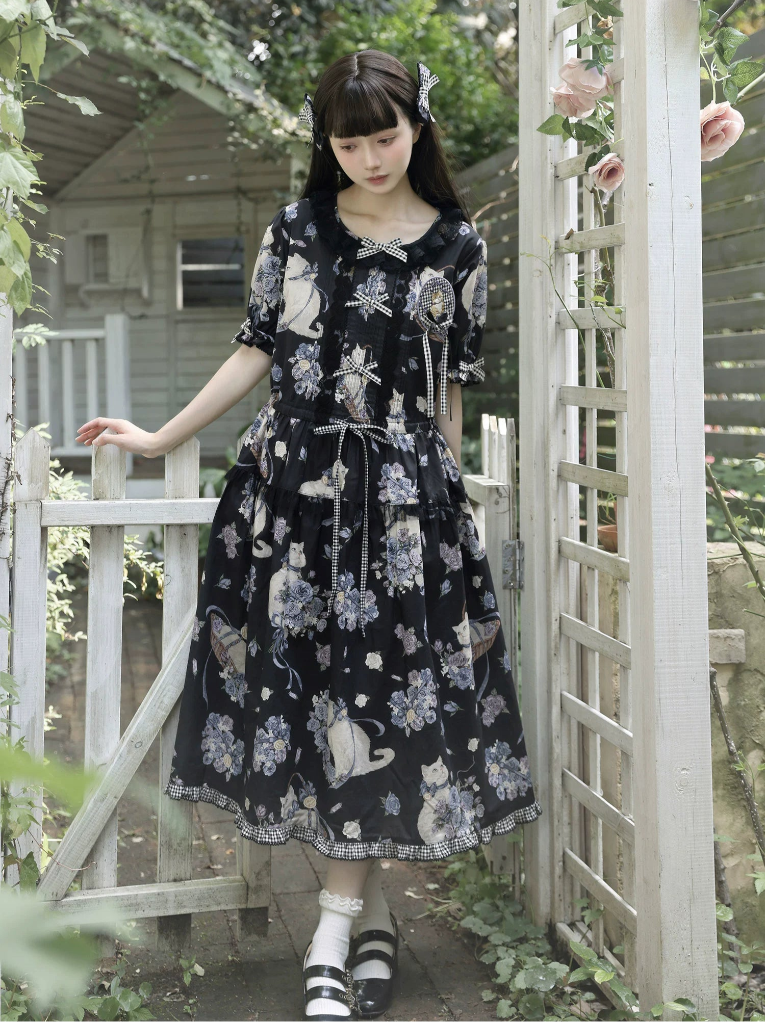 【受注予約6/19まで】Rural Cat プリントワンピース