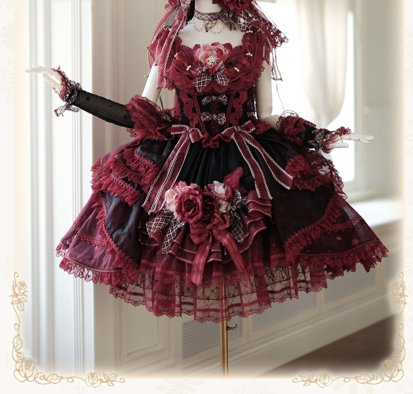 【受注予約8/13まで】Snow Rose Princess トレーン付きドレス・レッド×ブラック(シルバー)