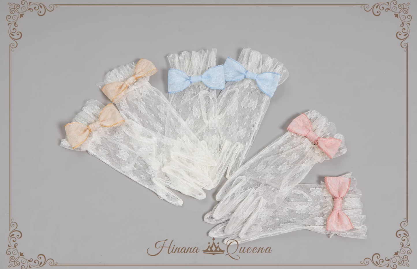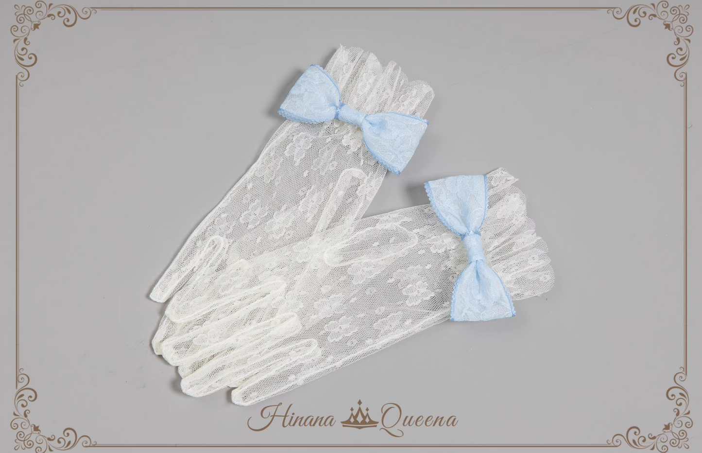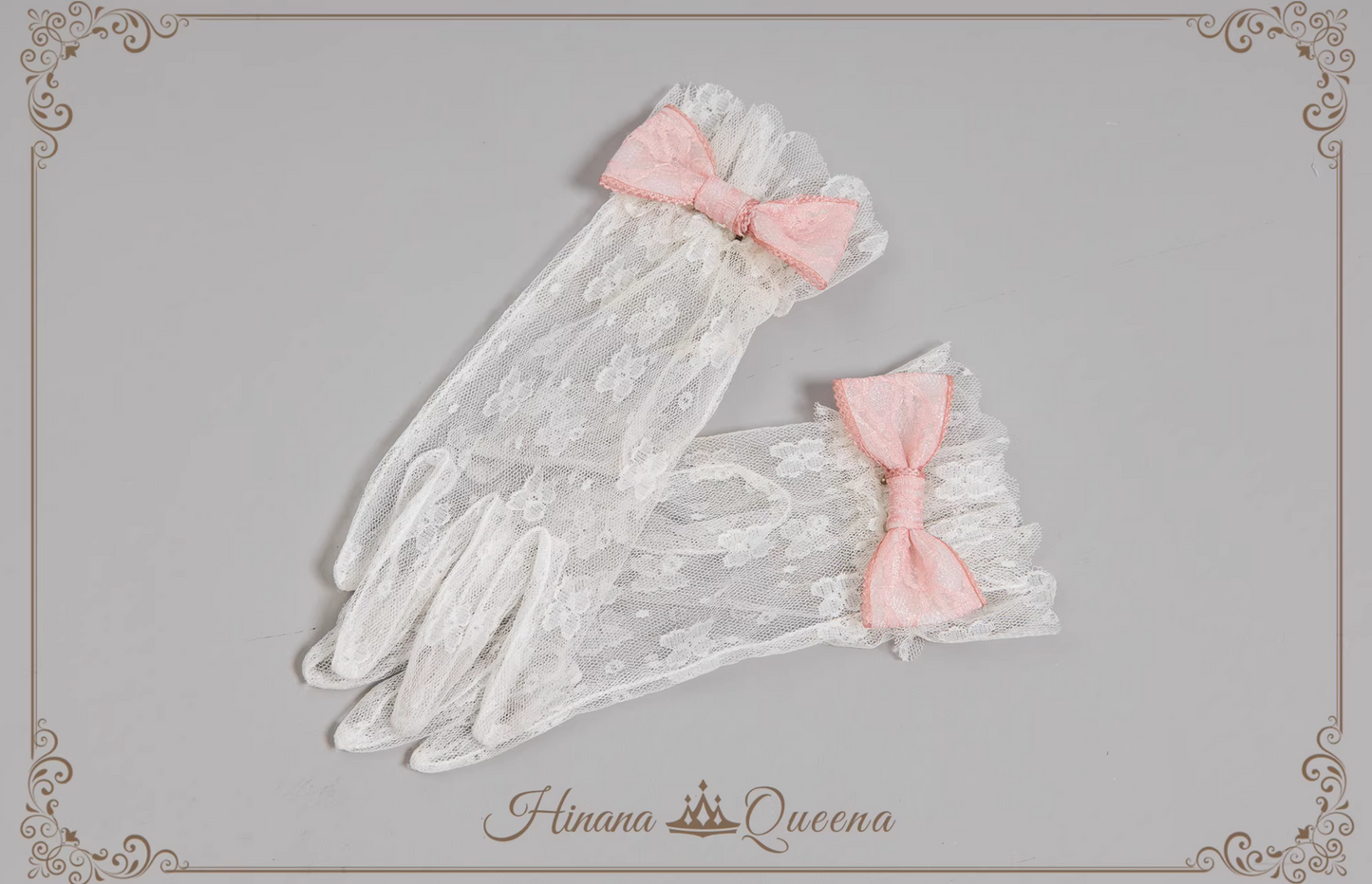 ちょこんと乗ったリボンが可愛いボンネットとグローブ。
