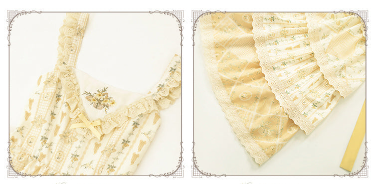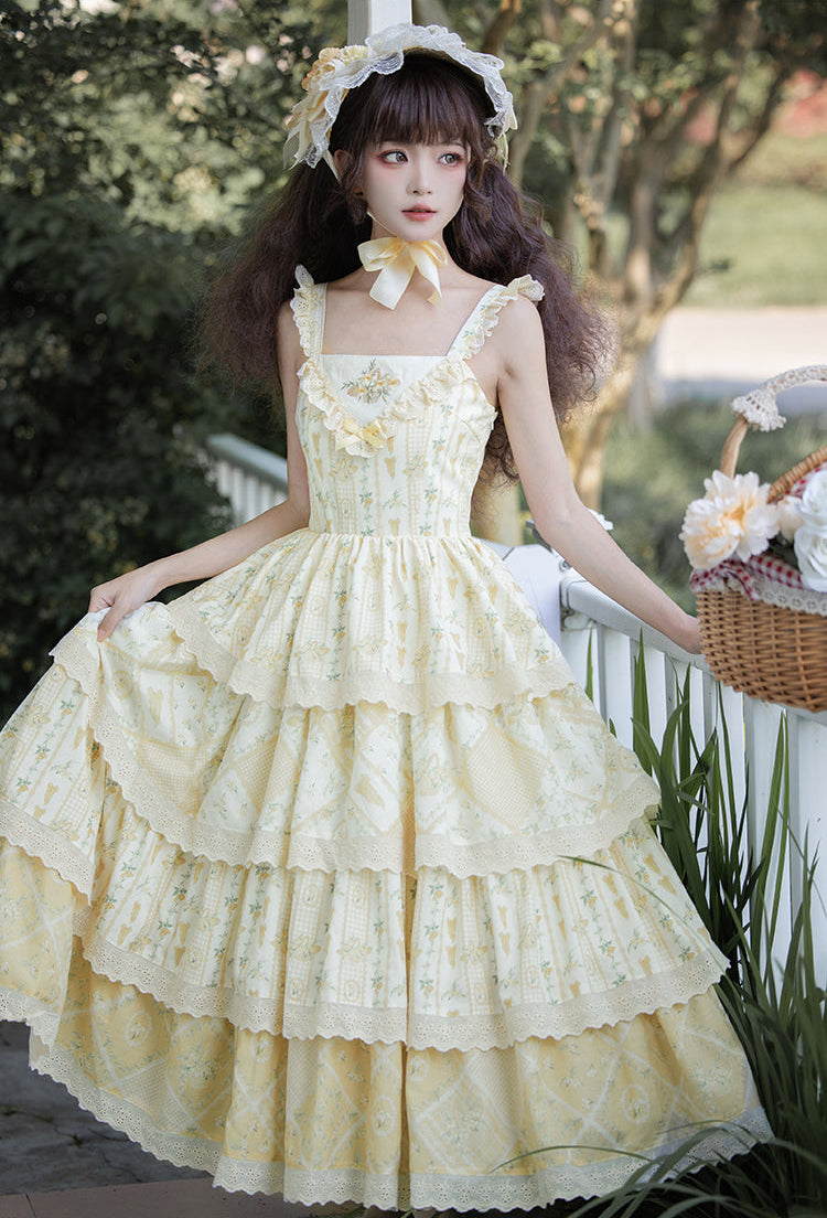 【予約販売】クリームイエローのフローラルジャンパースカート