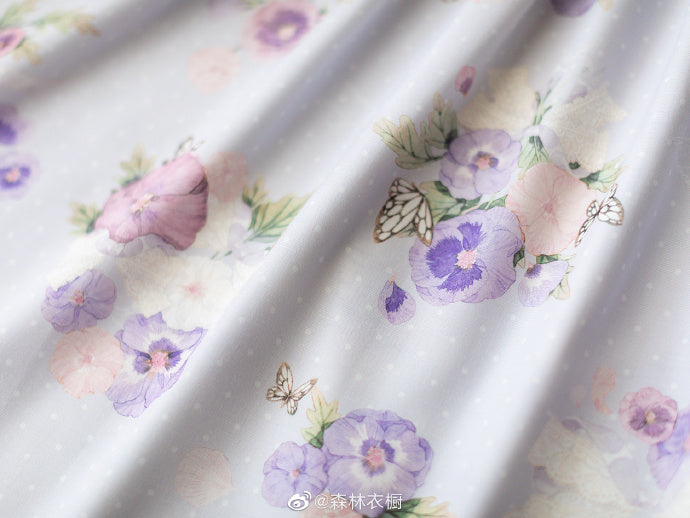 プリントはモノクロの薔薇、葡萄、グリーンの花柄、パンジー(ブルー)、パンジー(オフホワイト)の5種類。
