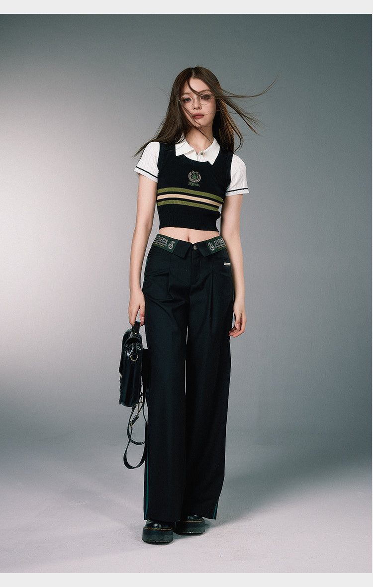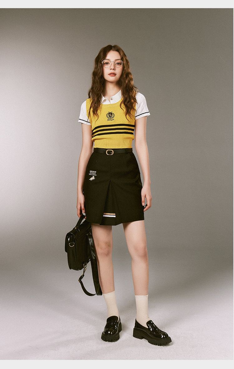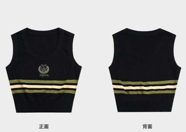 各寮のエンブレムがあしらわれたベスト。ショート丈にライン入りでスポーティな印象に。