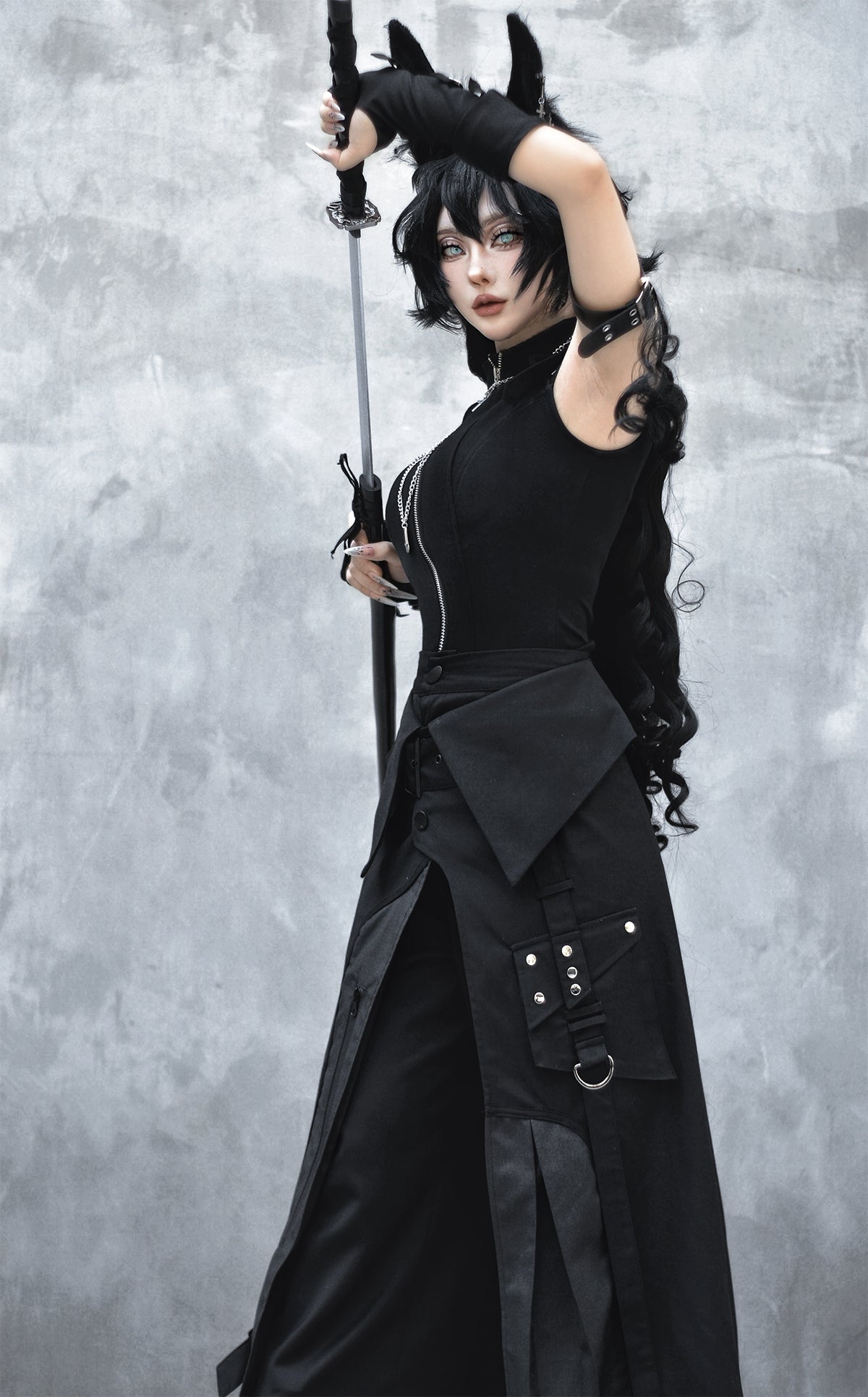 こちらのページはノースリーブトップス、ロングパンツ、ラップスカート、ウエストベルトのみの販売となります。長袖、アームスリーブその他は付属しません。